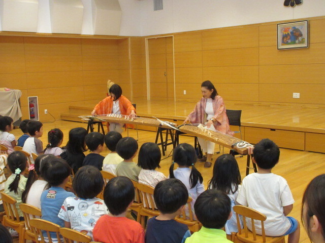 最後は大人からのプレゼント♪教師が劇を披露したり、卒園児の保護者によるフラメンコショーや、琴の演奏、コーラスサークルの合唱・図書部によるペープサートなど行なっています。