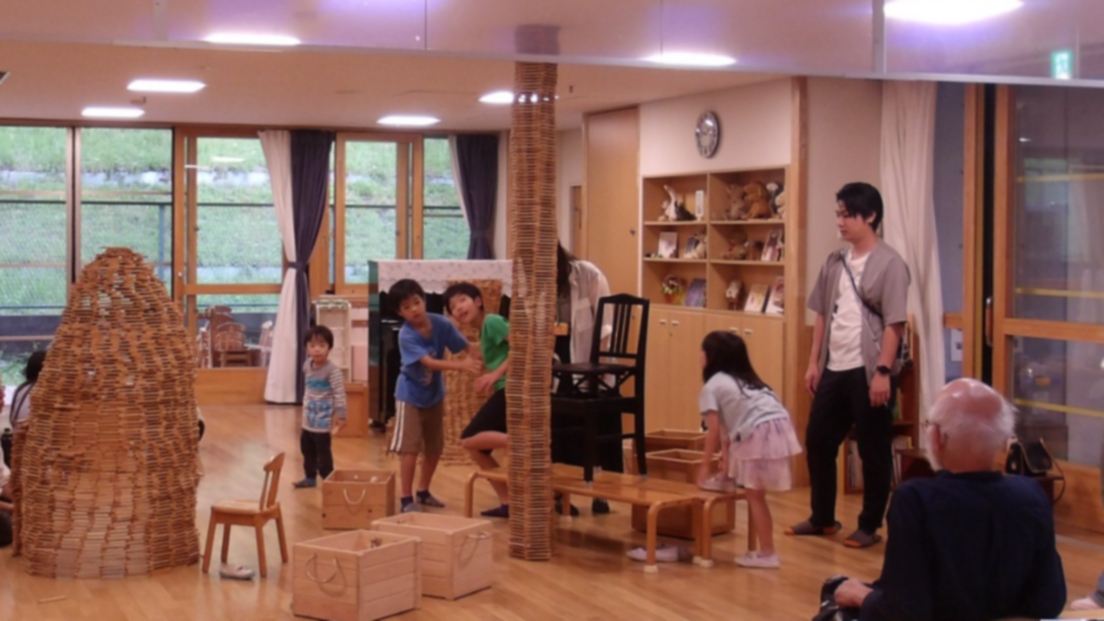 細い小さな積木ですが、積んでいくと素敵なオブジェができますよ!大人も夢中になっています。