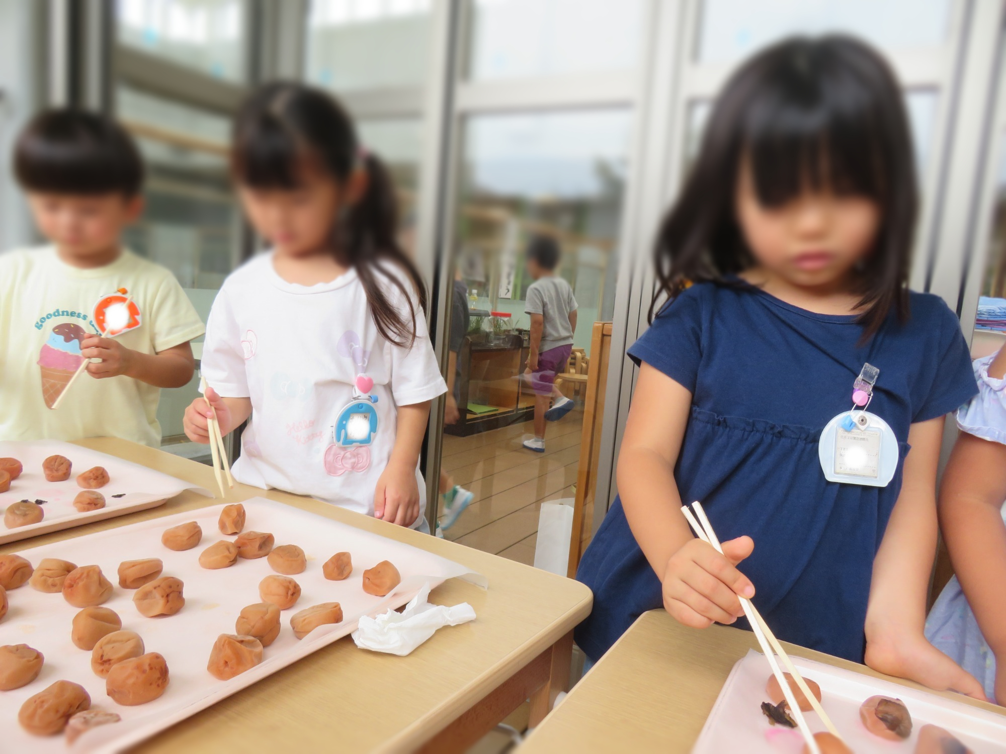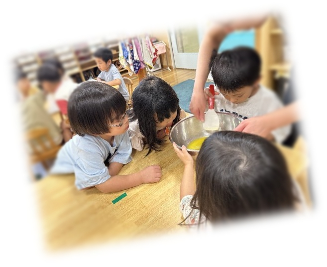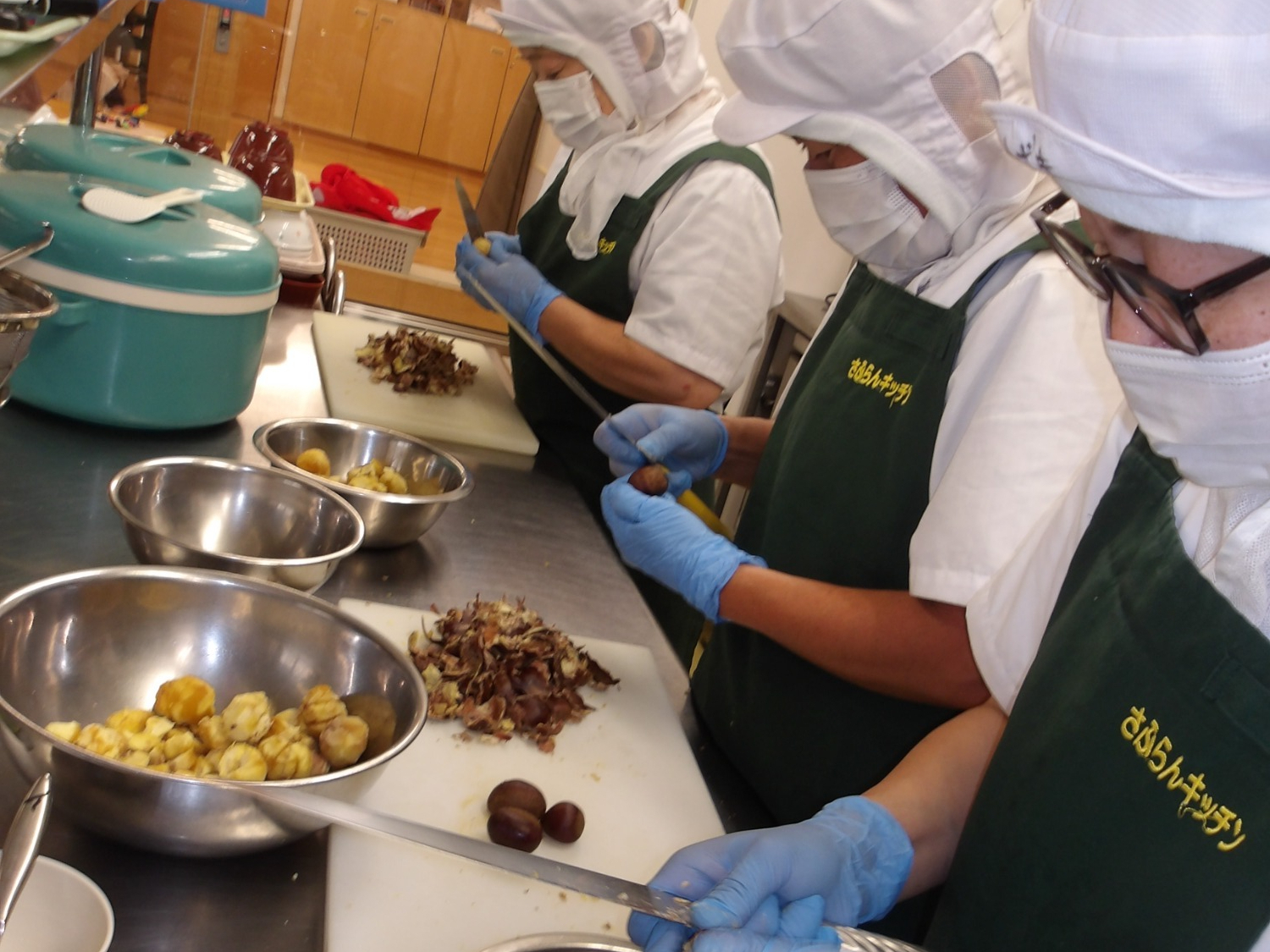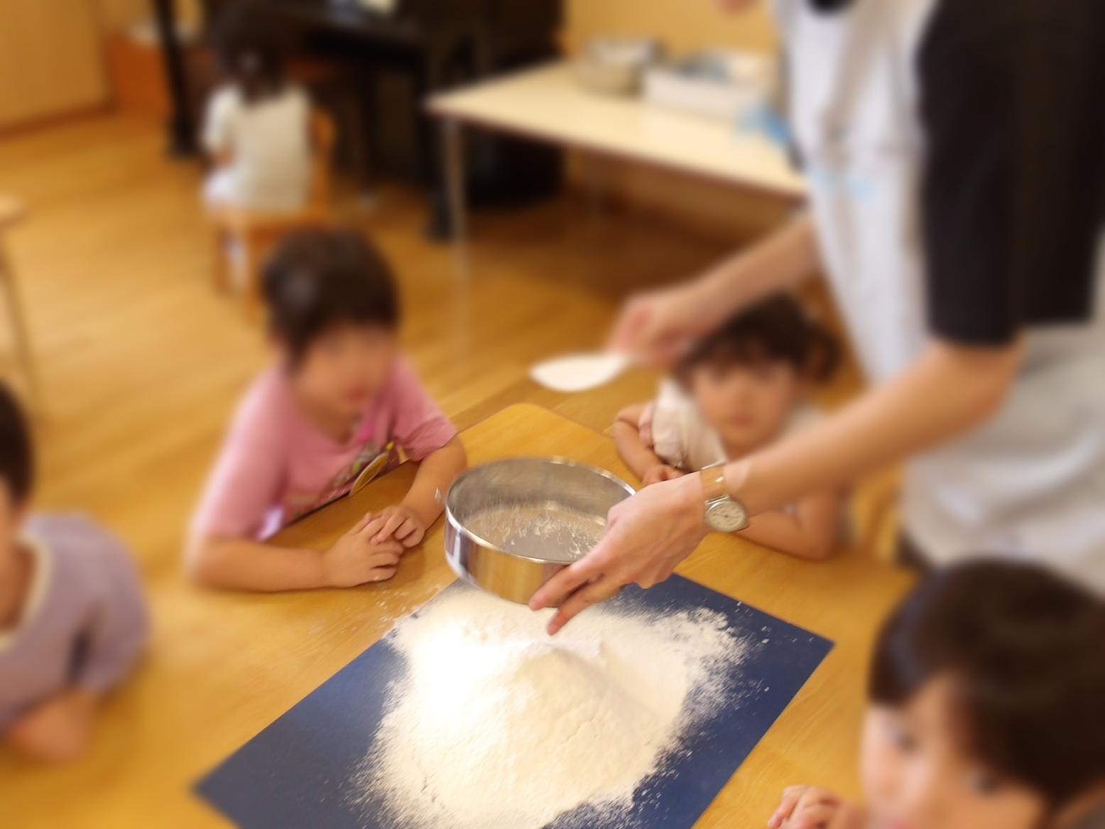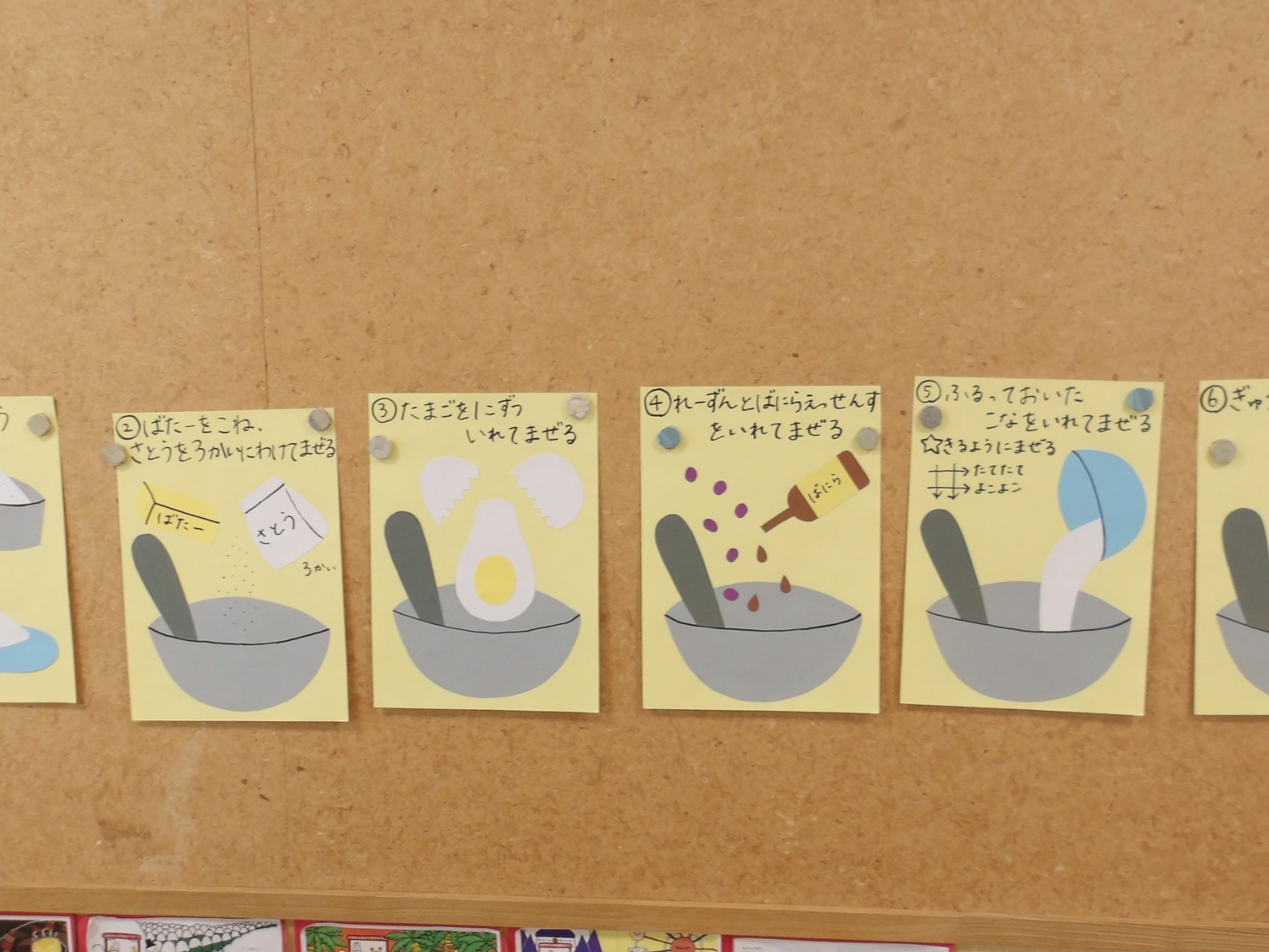 きょうは年少組がクッキング!お芋をつぶしてきんとんにしました。みんなで掘ってきたお芋をみんなできんとんづくり♪おいしかったね