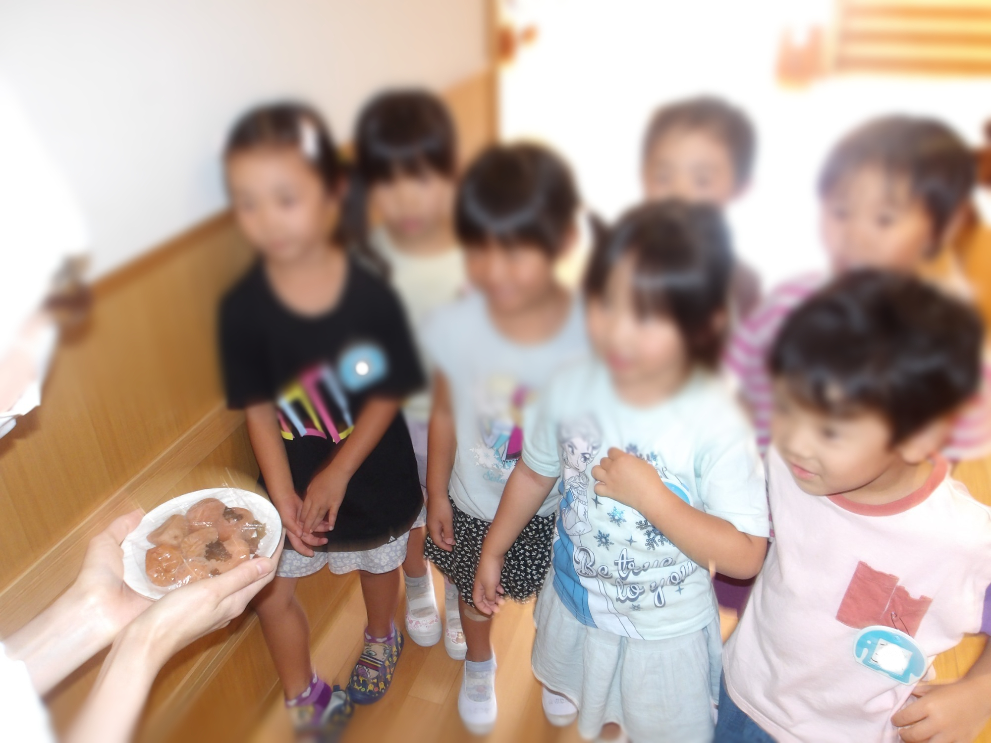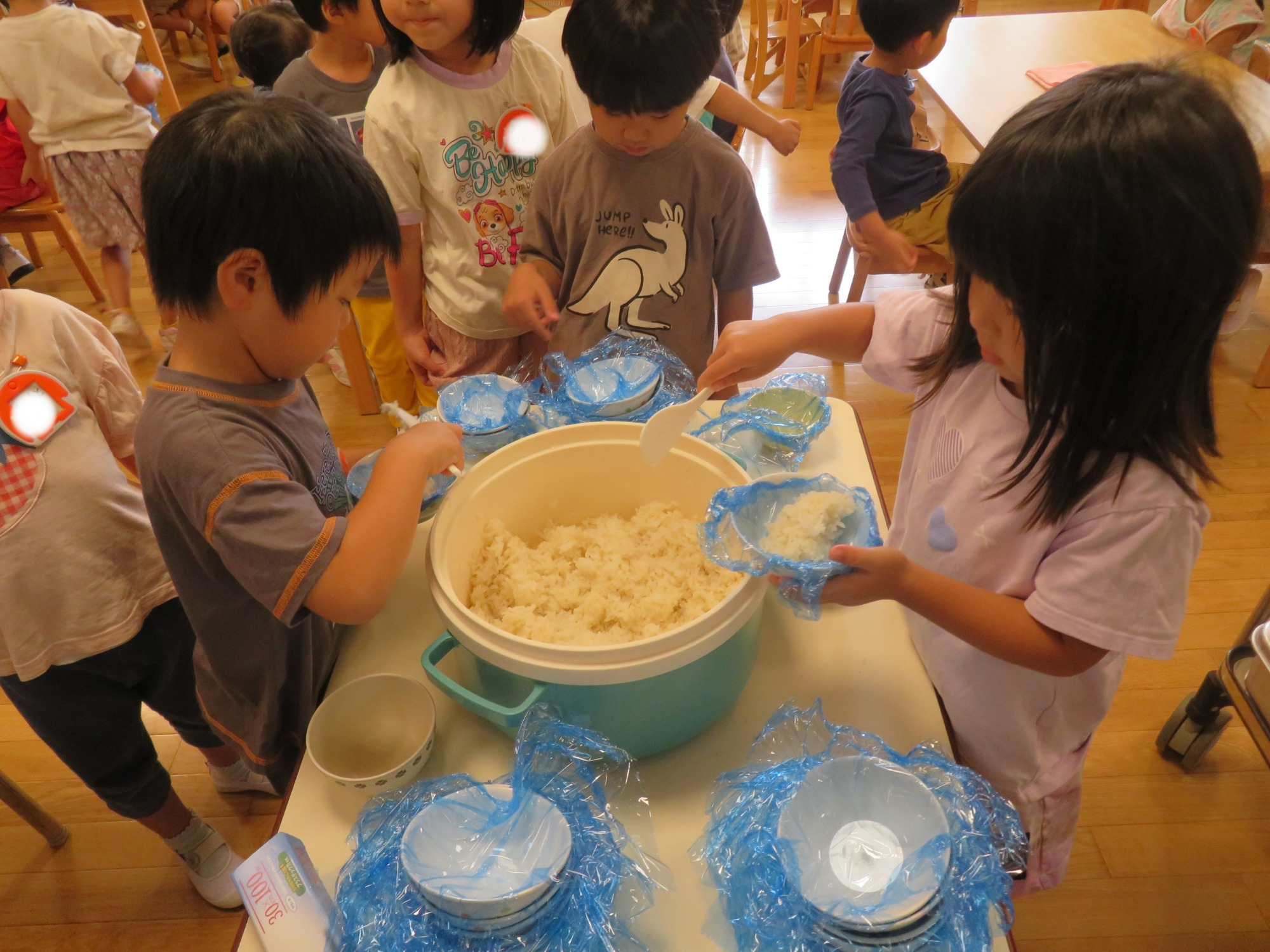 年少組の配膳に行くころ、年長さんがリレーの練習をし終えたところでした。すみれがんばれー!ゆりがんばれーーー!見ていた年少・年中さんも夢中で応援していました。運動会まであと10日。元気な身体で当日を迎えられるようキッチンは食事の面からサポートします。
