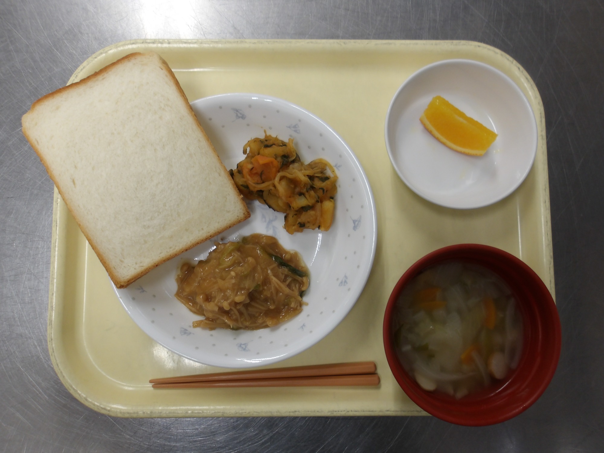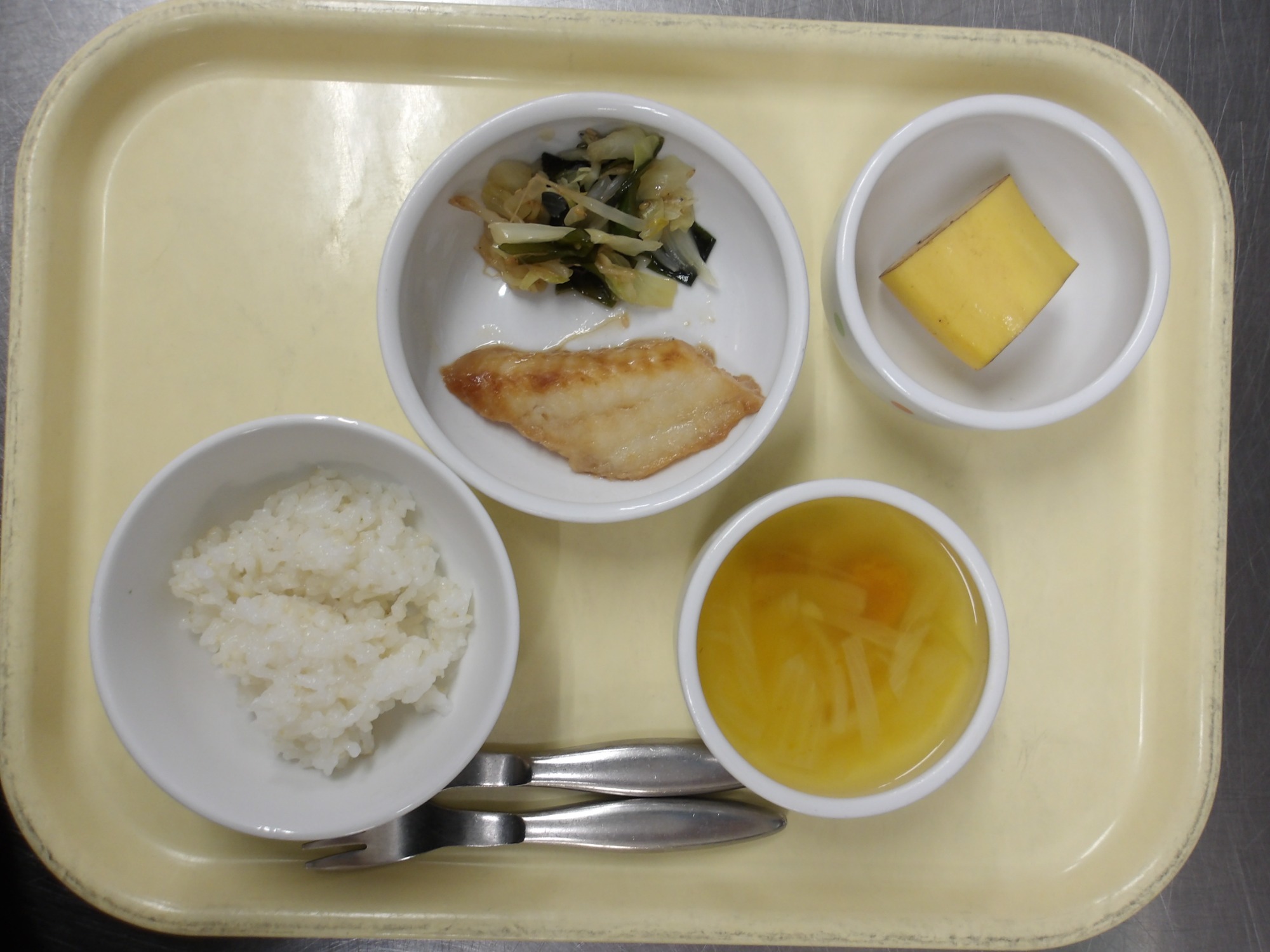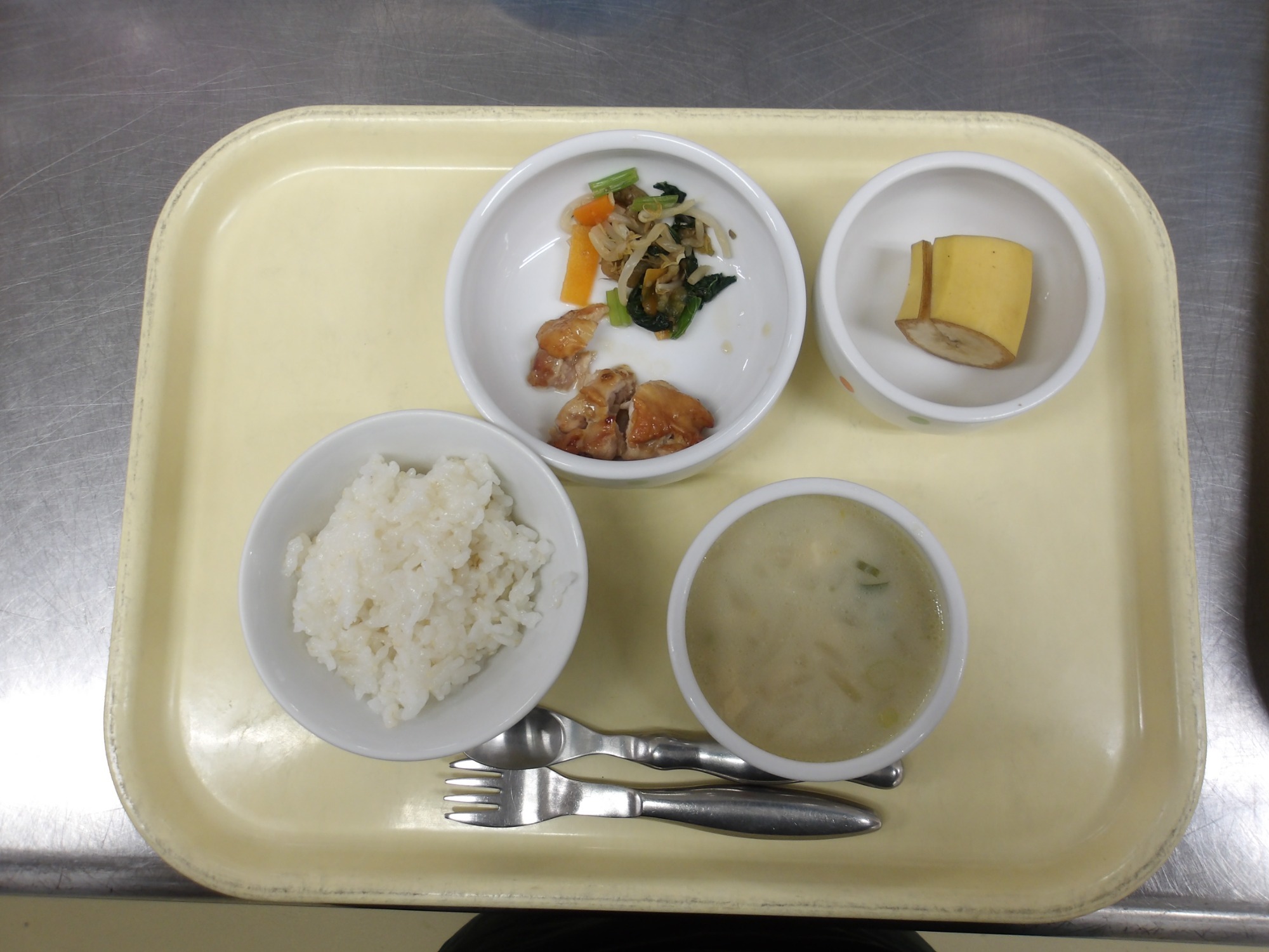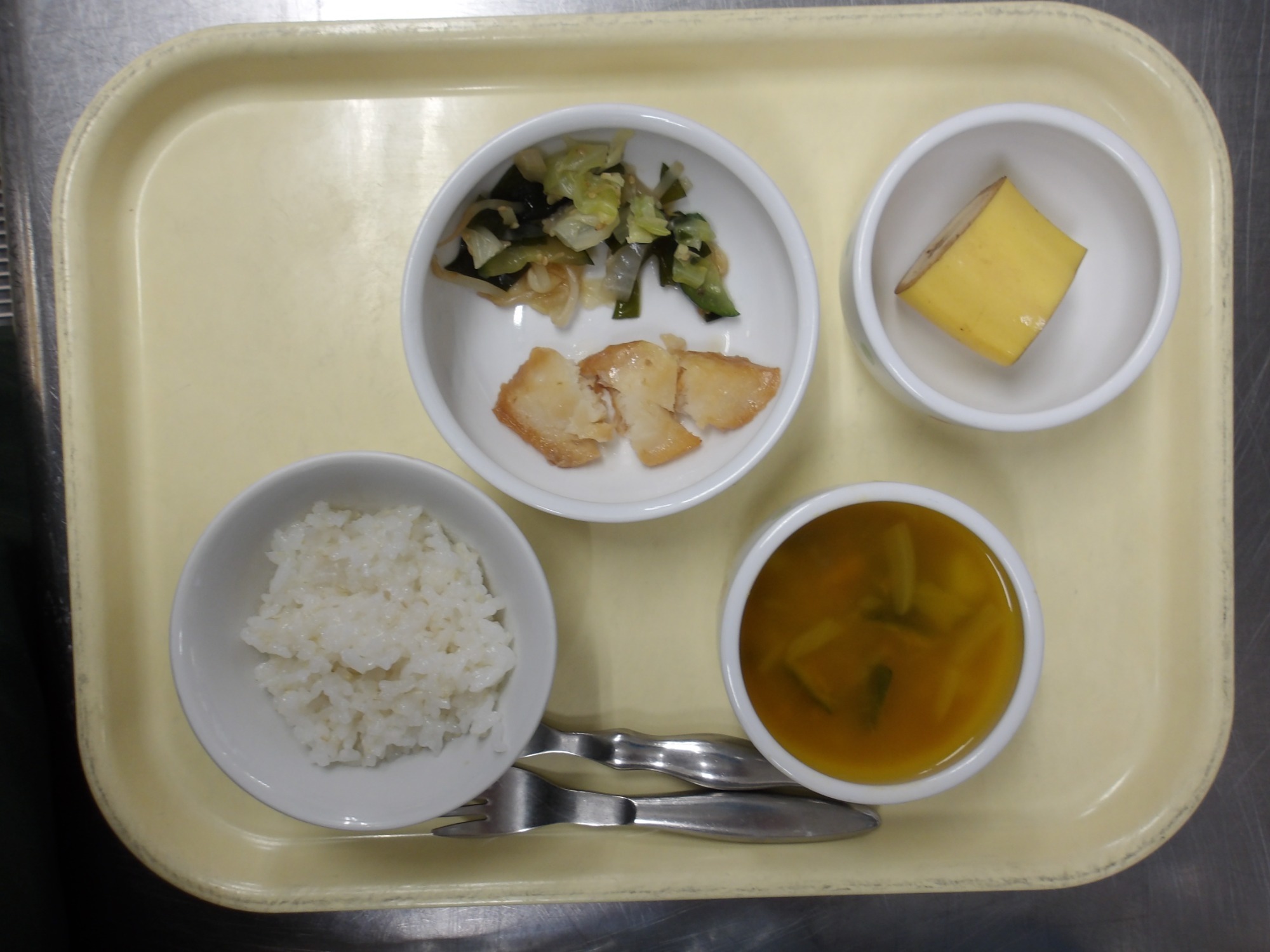 えのきたけと白菜が一緒に入ったみそでしたがみその濃いめの味付けと一緒に野菜をよく食べている様子でした。みそは、材料を発酵させて作った発酵食品です。お腹の中から調子を整えてくれます。