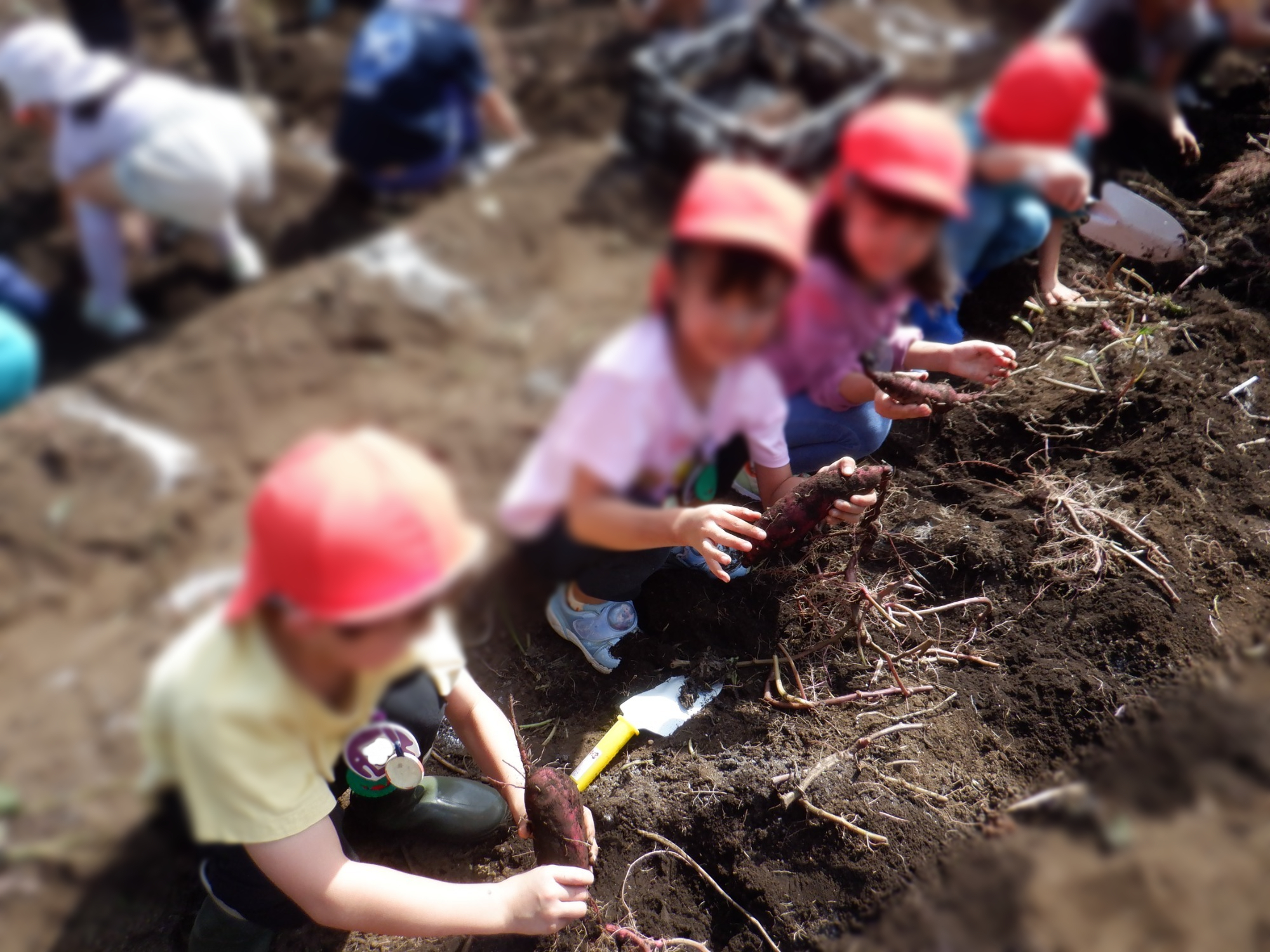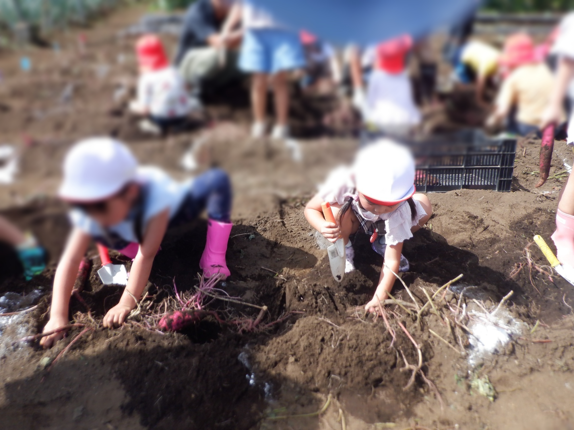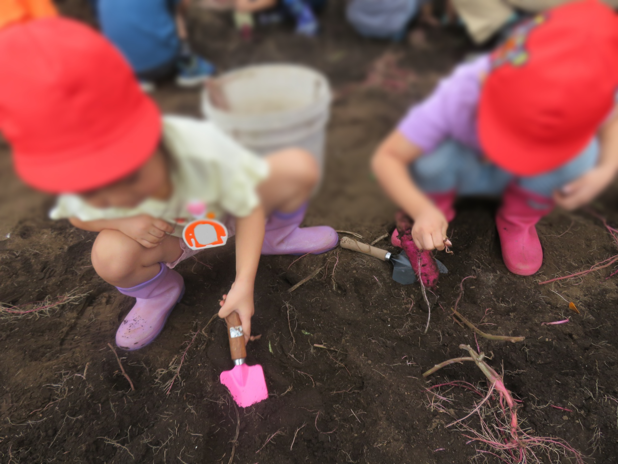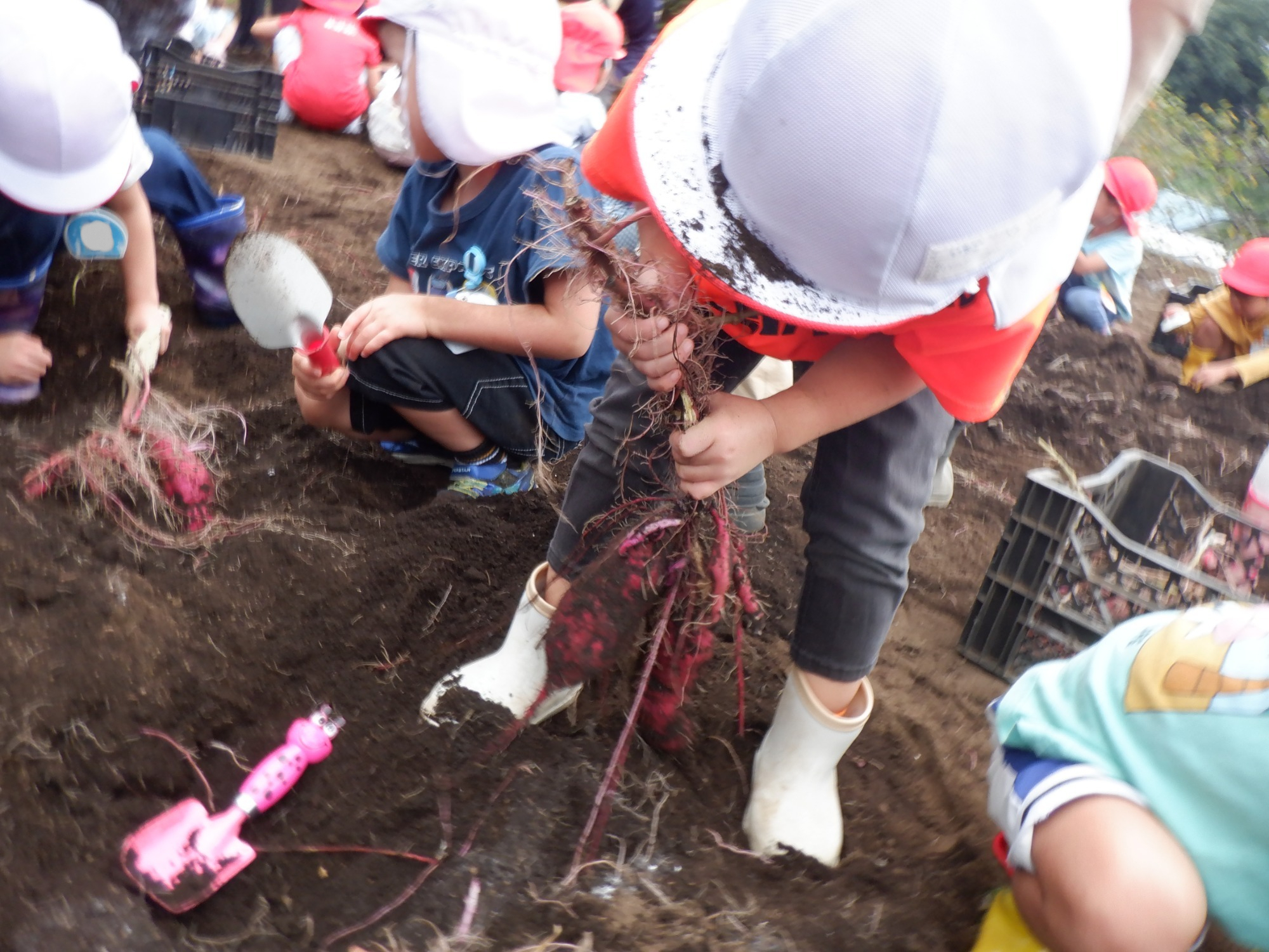 年中組のお芋ほり!6月にじゃがいもほりに来て以来なので2回目の畑です。大きなおいも、掘れたね!!