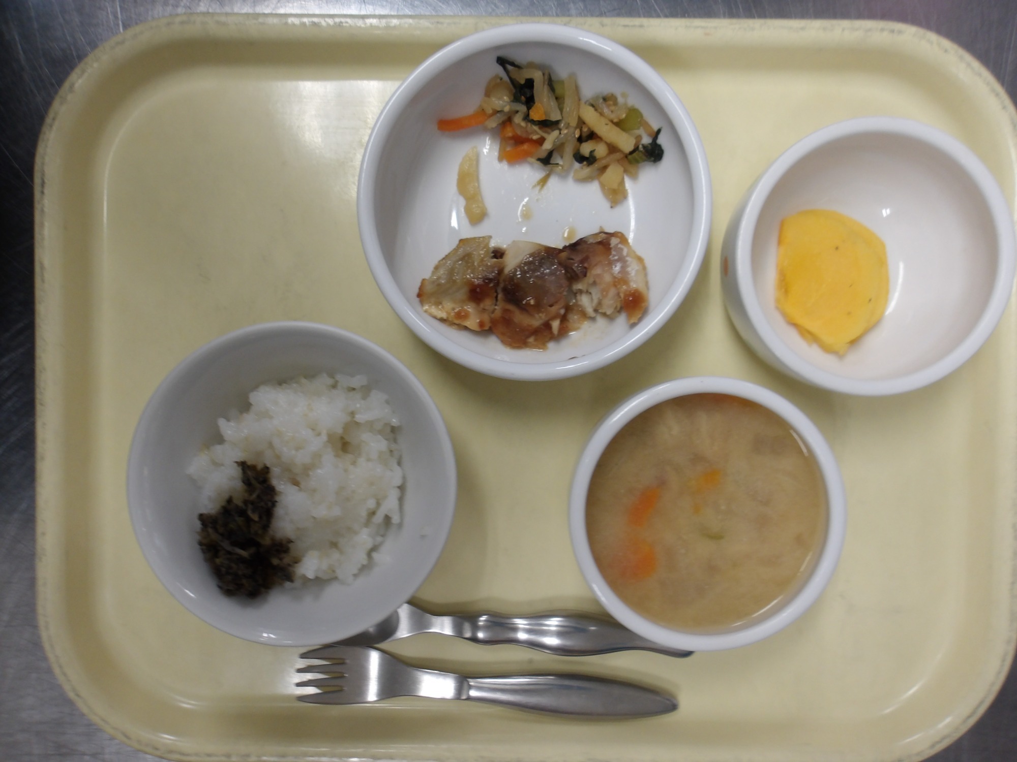 きょうがハロウィンの日なのでかぼちゃを使ったメニューのふかしかぼちゃを提供です。カロテンたっぷり、のどの粘膜も潤います。しっかり食べて運動会の日を元気に迎えましょう!