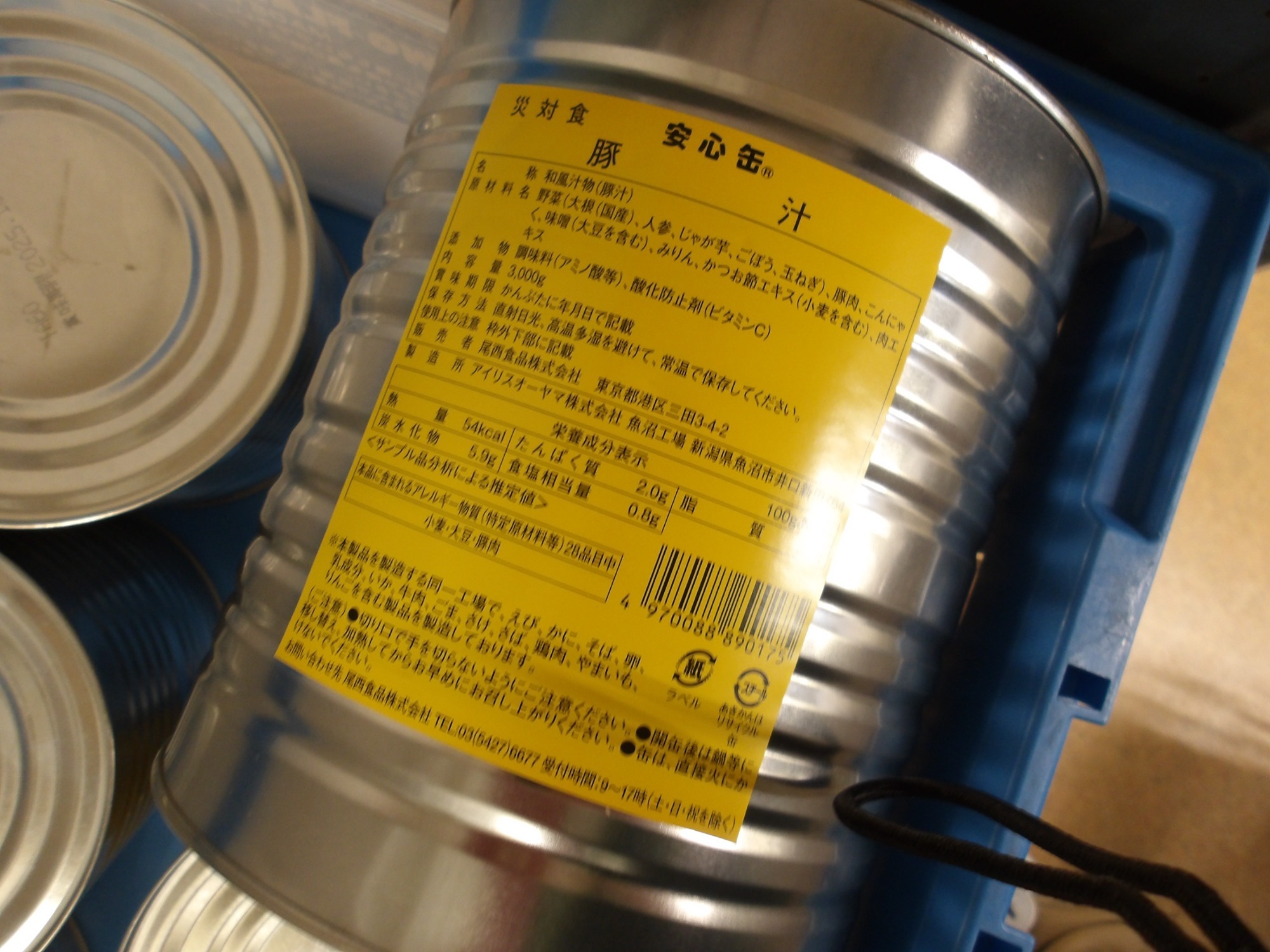きょうは急遽豚汁の缶に変更し備蓄食材の試食をしました。このままだと少々味が濃いめなのでとうふを足していただきました。実際に災害時に食べる際に食べなれておくことがとても大切です。