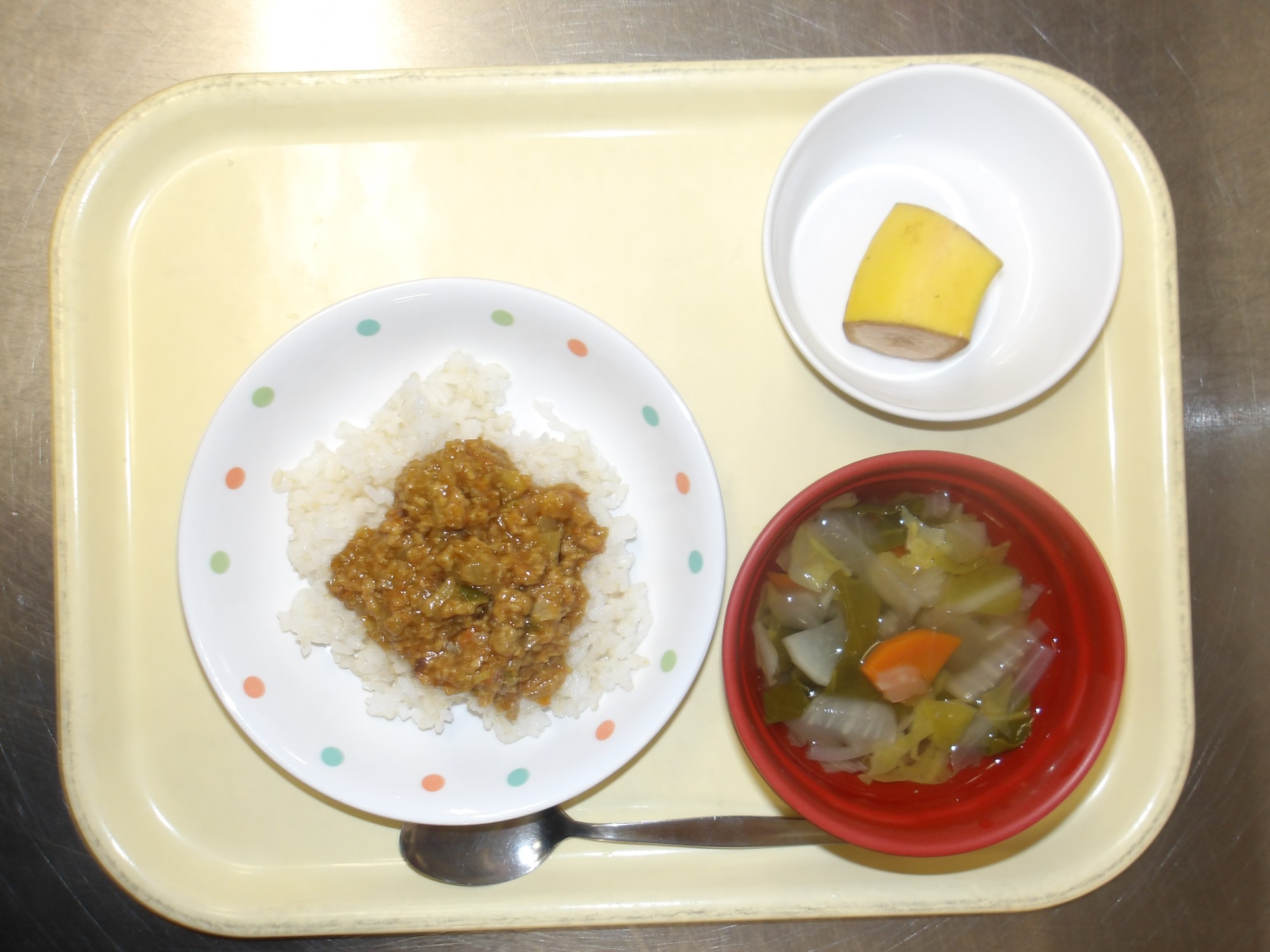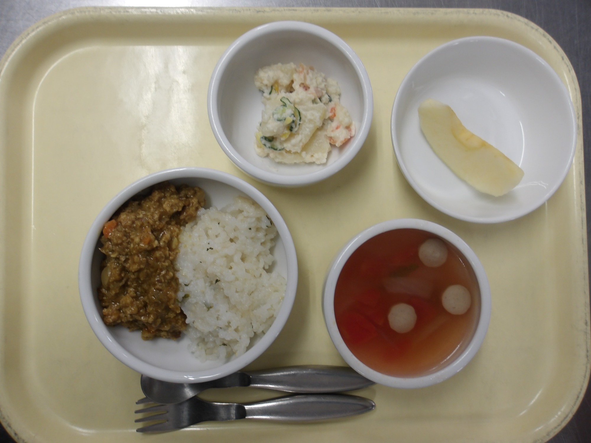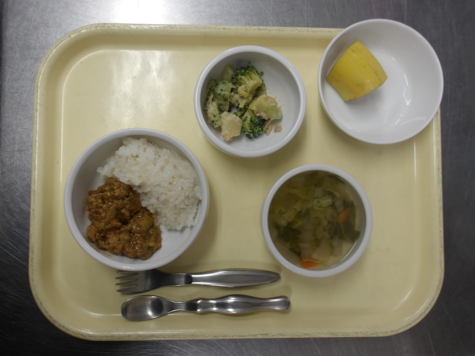 ドライカレー パセリライス マヨドレ和え イギリス風ランチスープ りんご