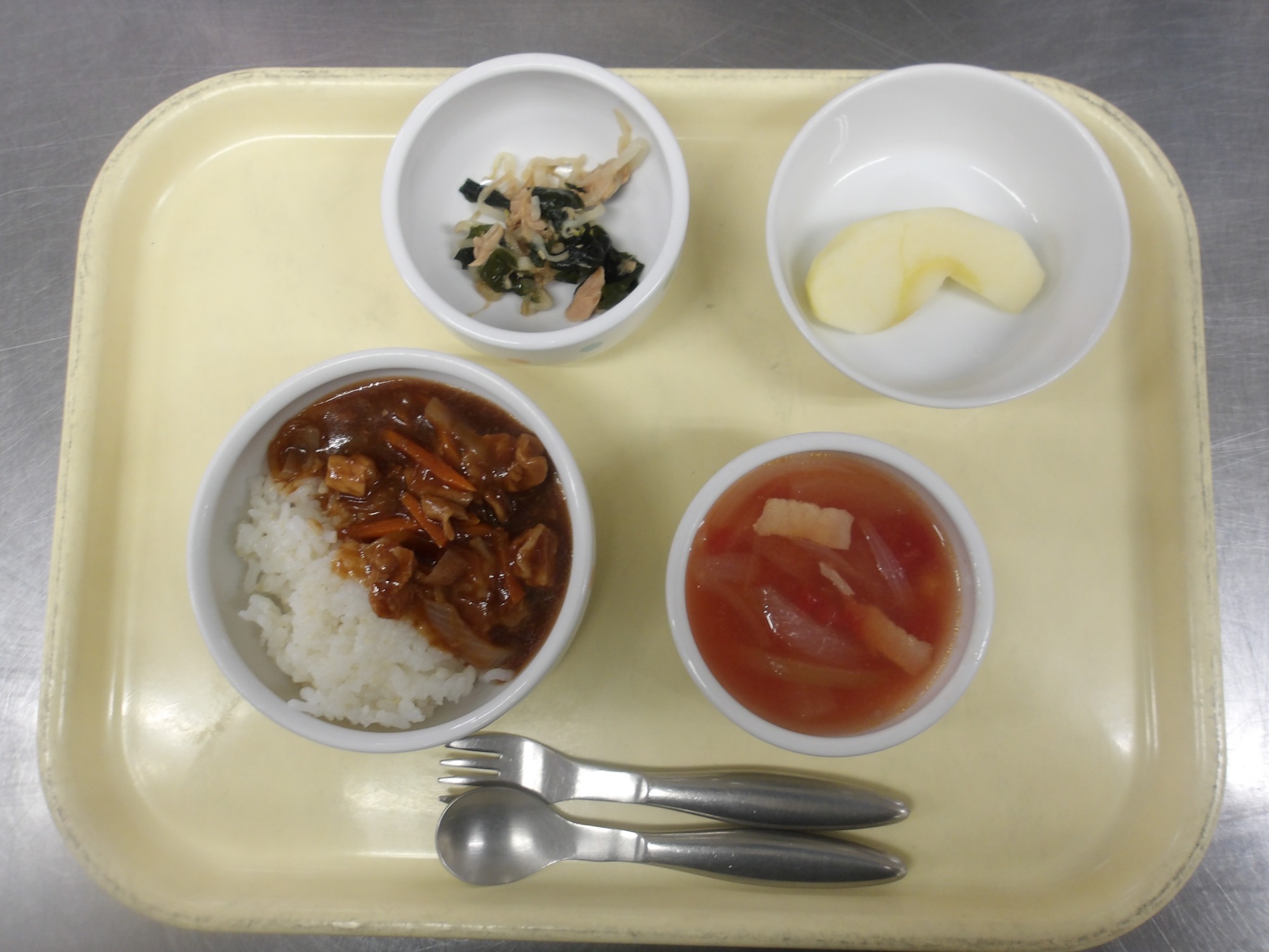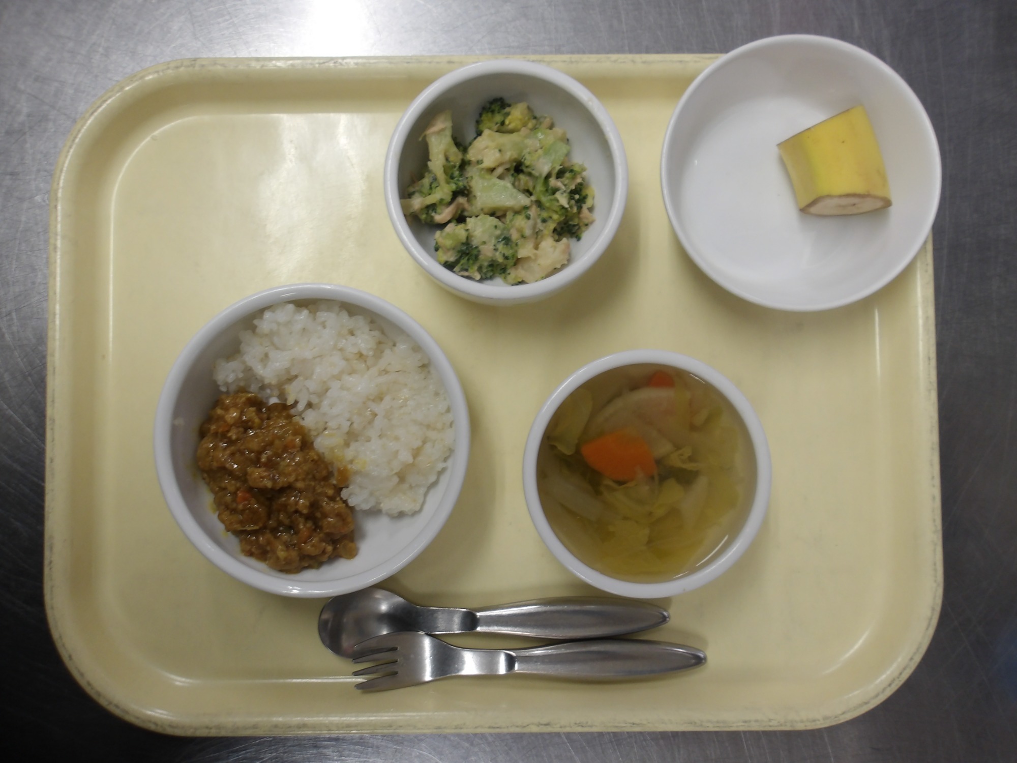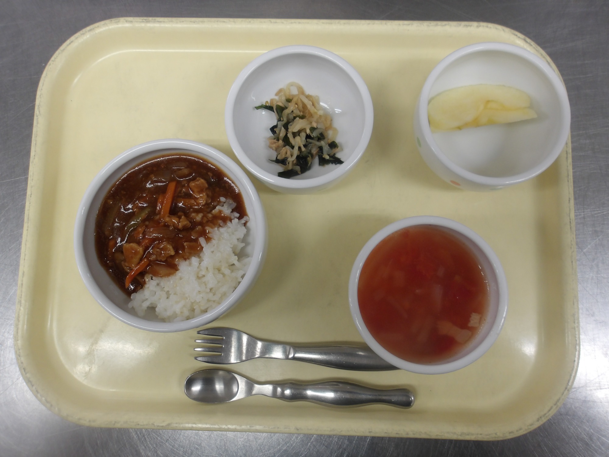 ドライカレー パセリライス マヨドレ和え イギリス風ランチスープ りんご