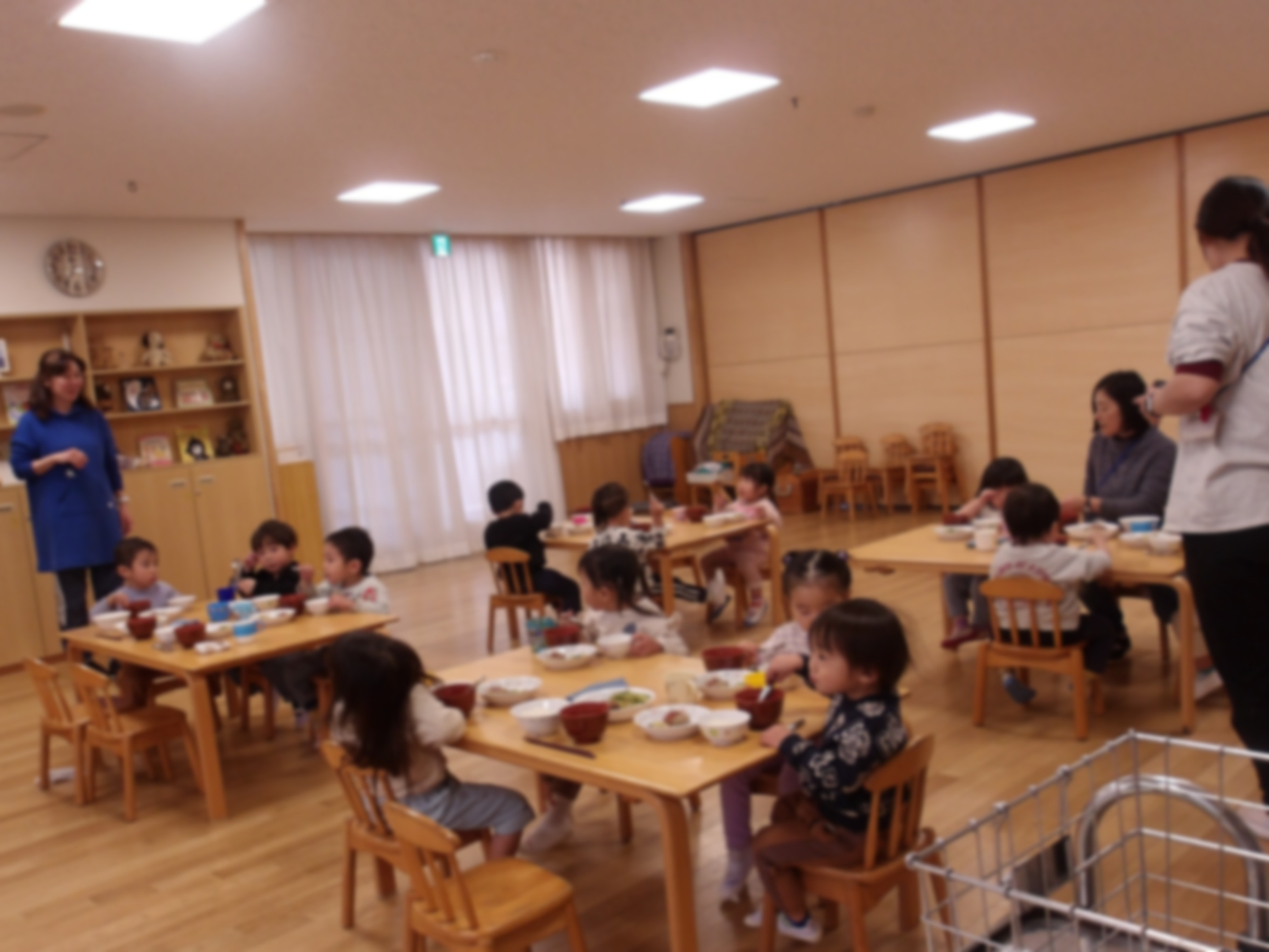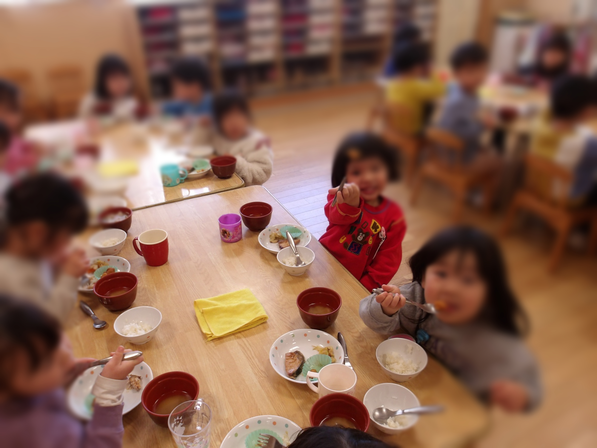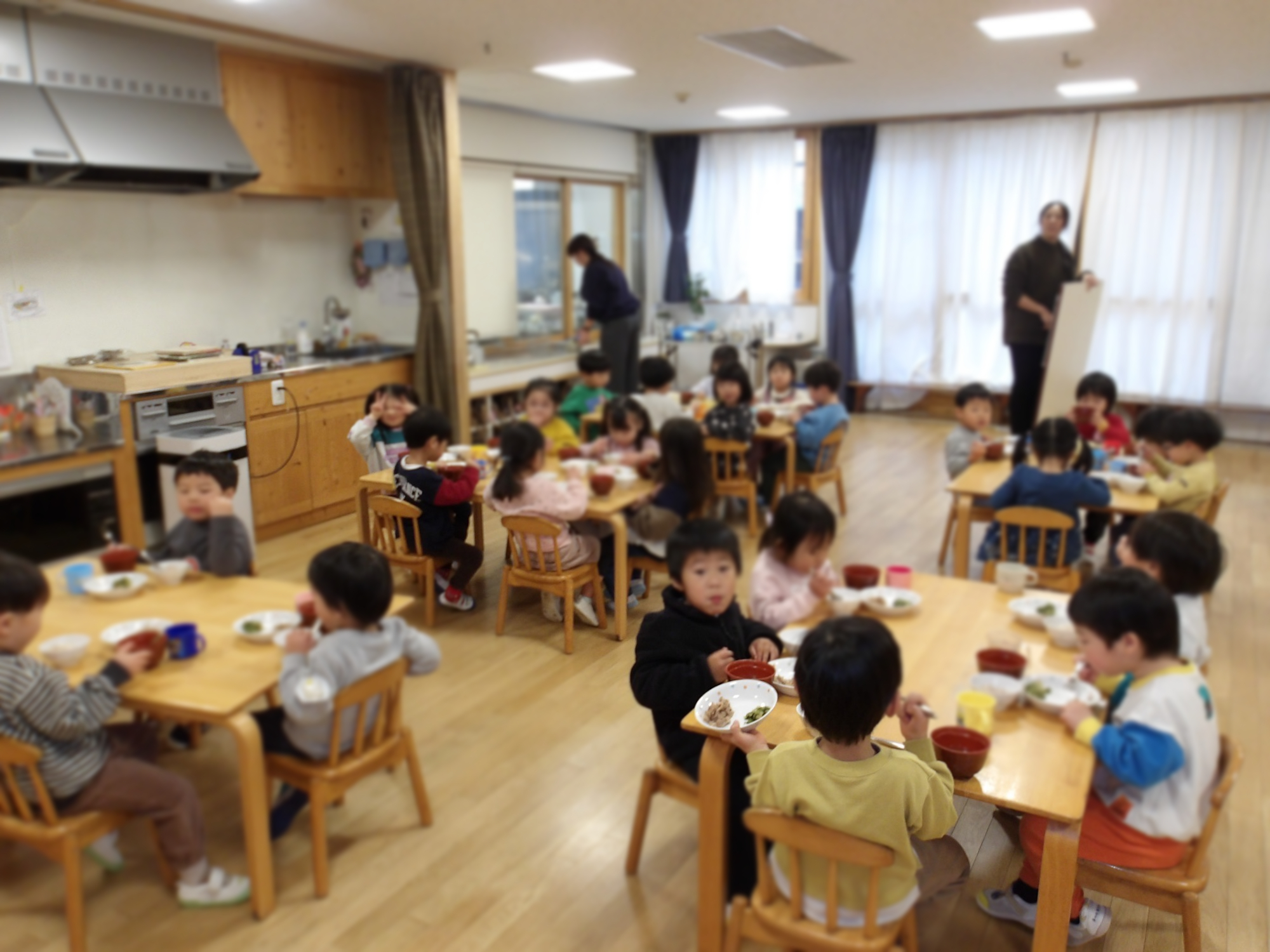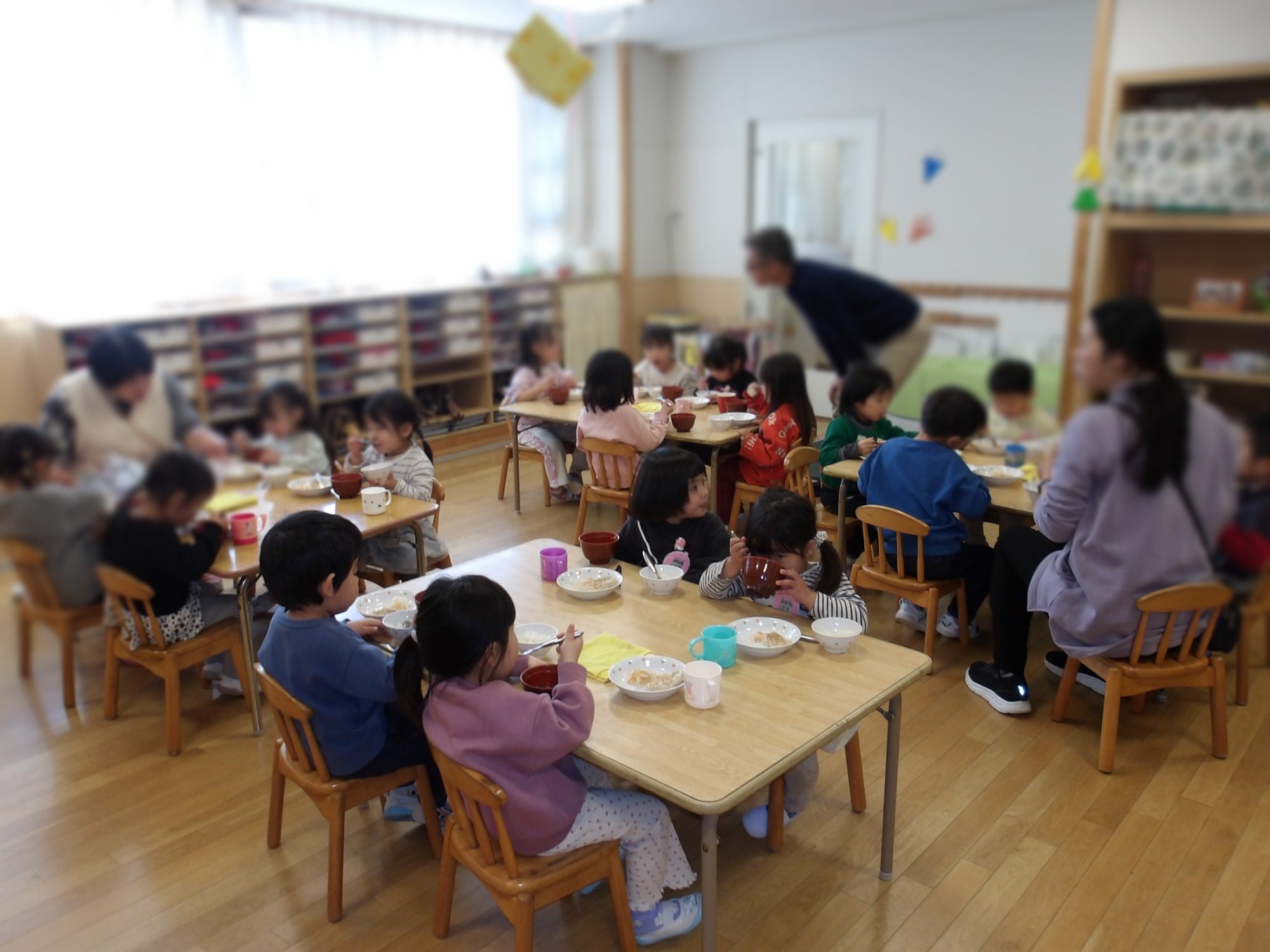 うさぎ組に行ったとき汁が大好きな子が3杯目のおかわりをしていました。出汁を毎日朝一番でとるので旨味たっぷりのものを提供しています。桃の花がたくさんの汁でしたね♪