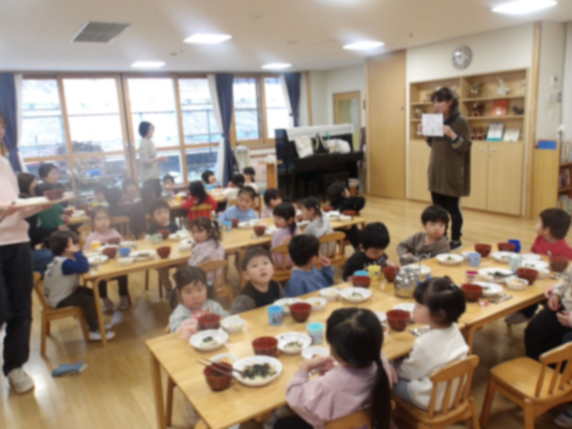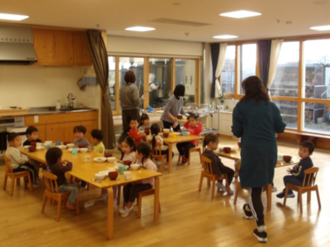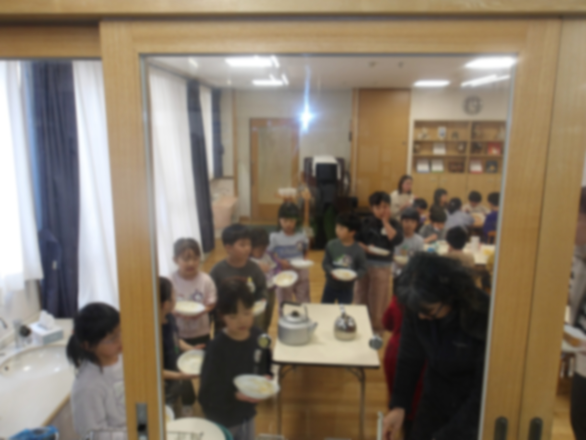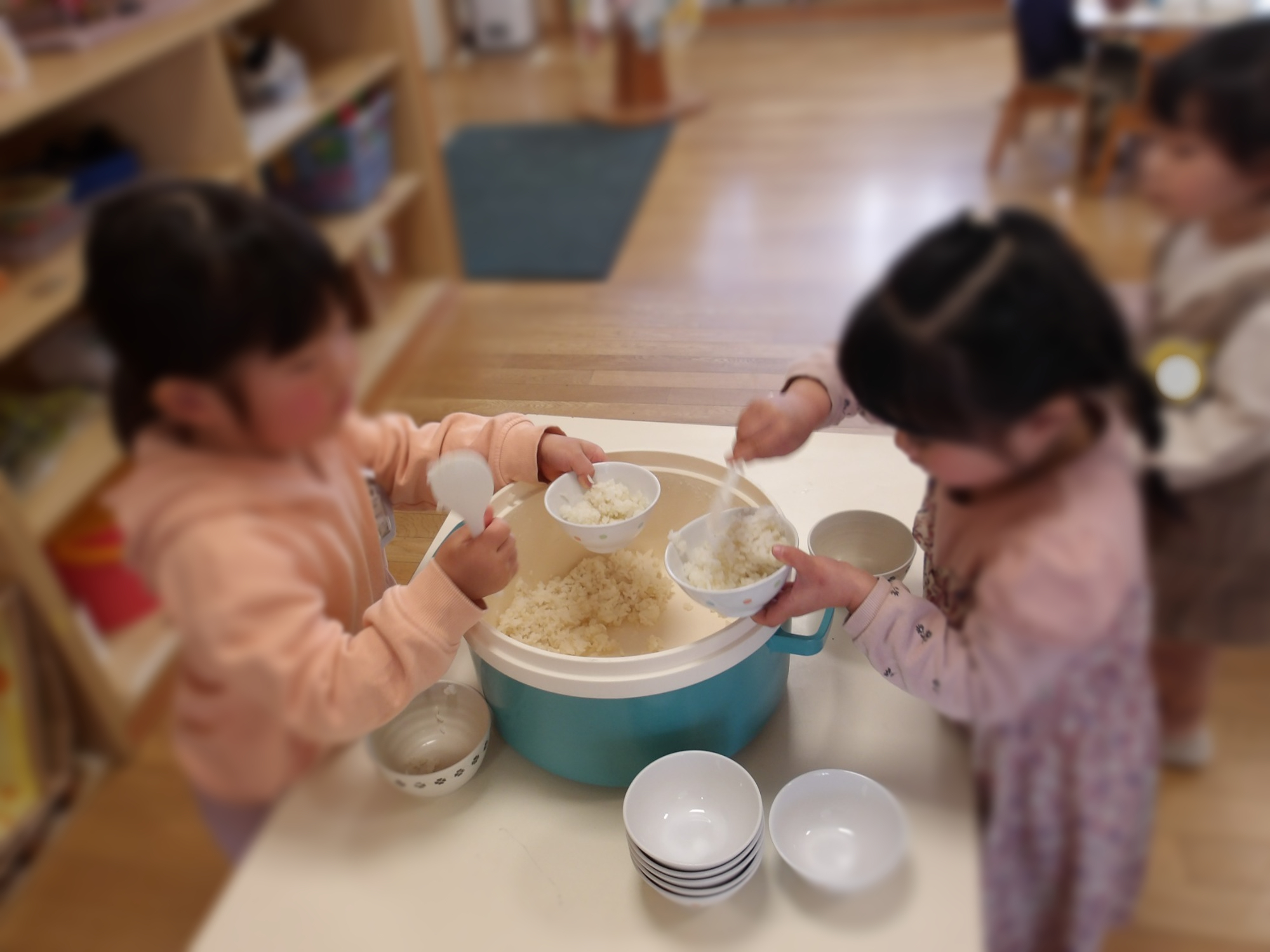 うさぎ組に行ったとき汁が大好きな子が3杯目のおかわりをしていました。出汁を毎日朝一番でとるので旨味たっぷりのものを提供しています。桃の花がたくさんの汁でしたね♪