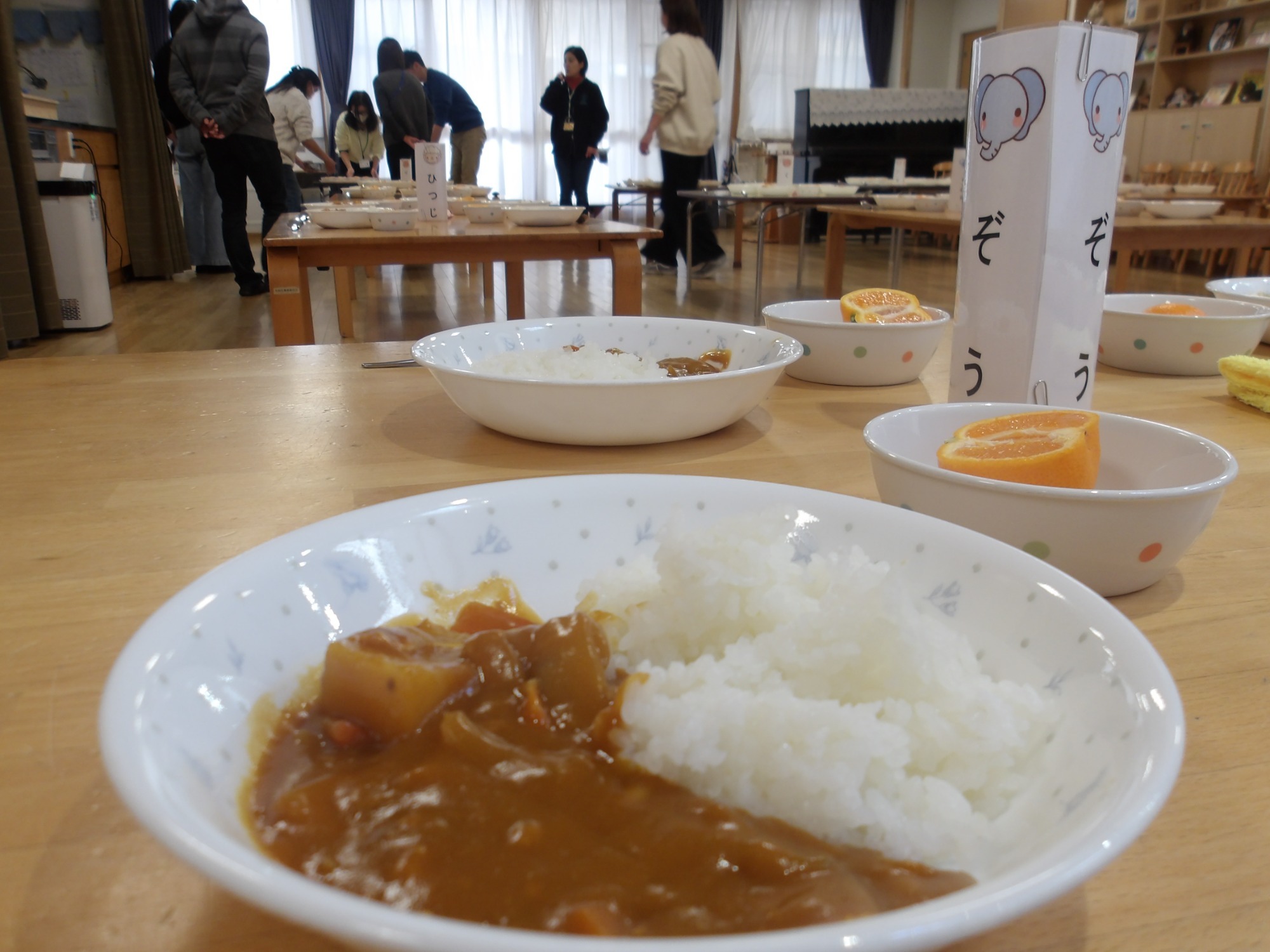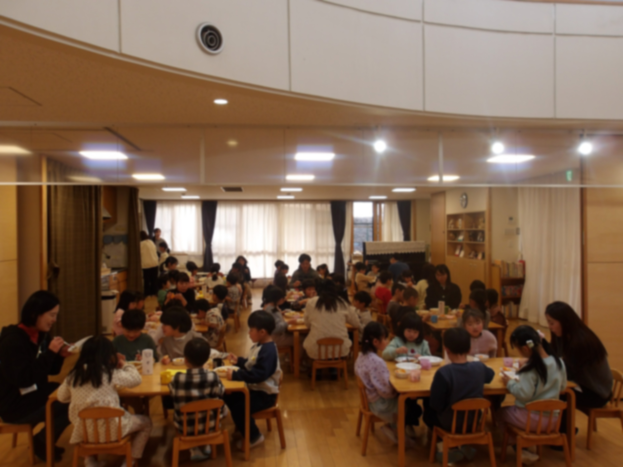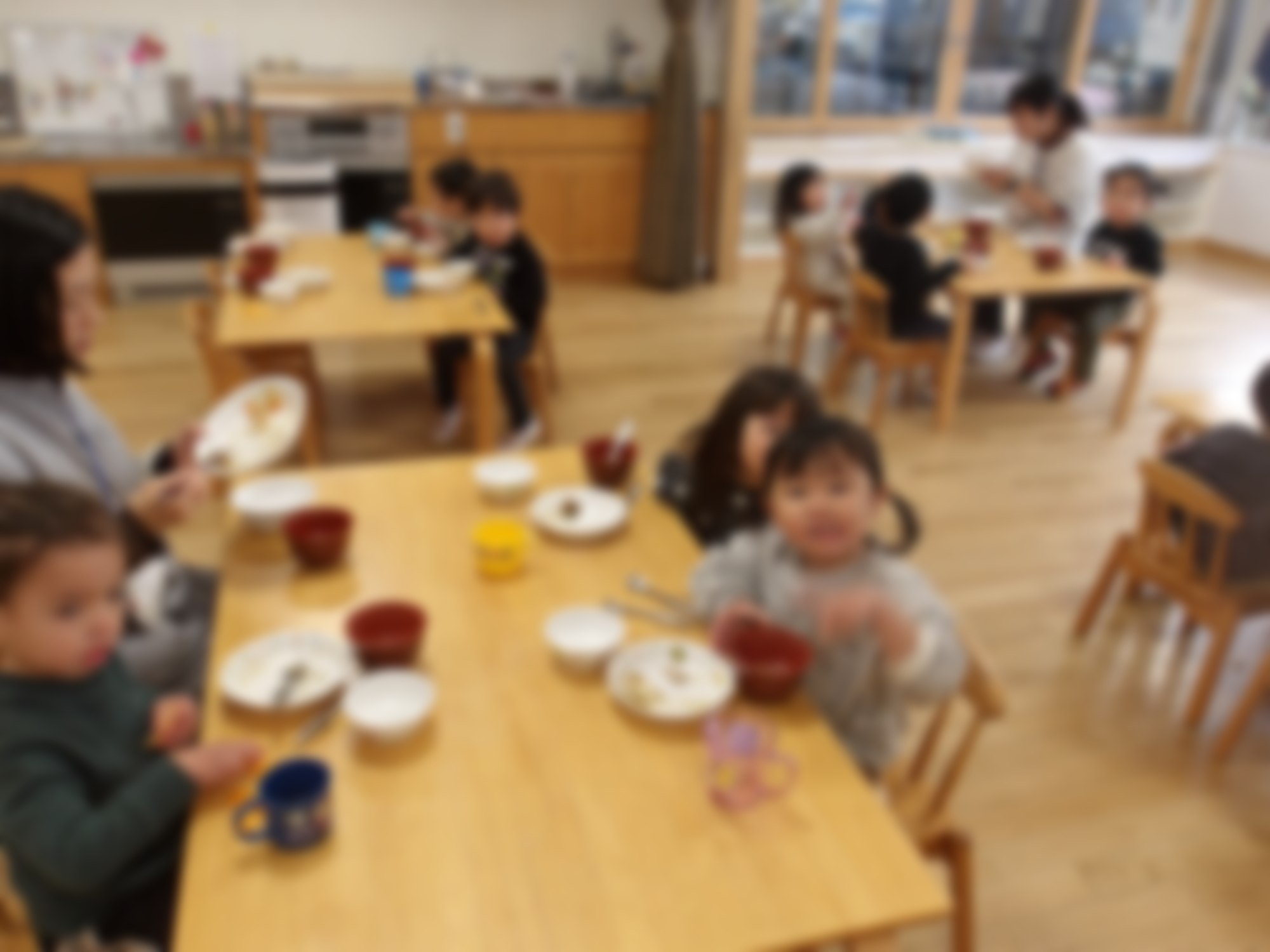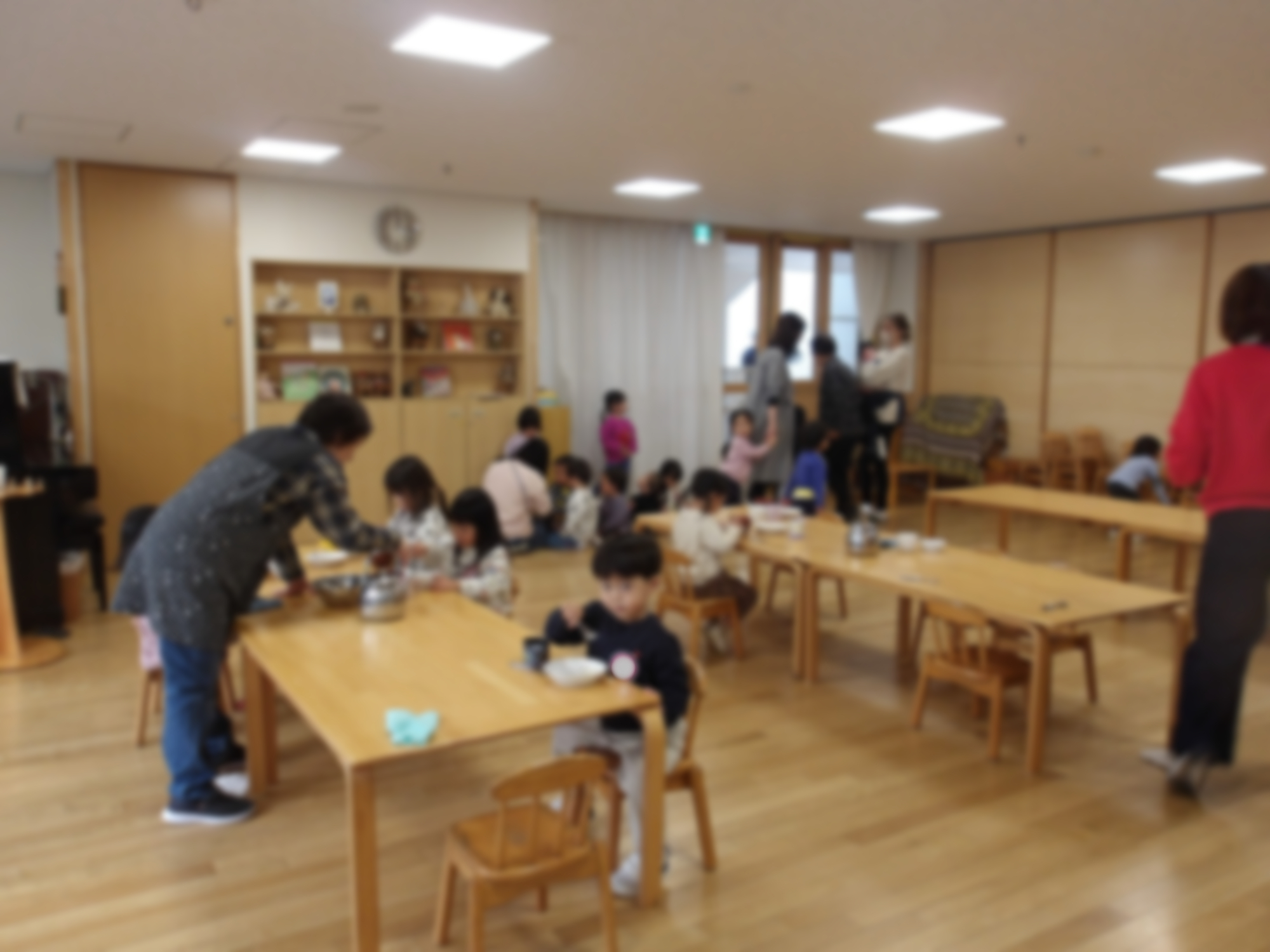 うさぎ組に行ったとき汁が大好きな子が3杯目のおかわりをしていました。出汁を毎日朝一番でとるので旨味たっぷりのものを提供しています。桃の花がたくさんの汁でしたね♪