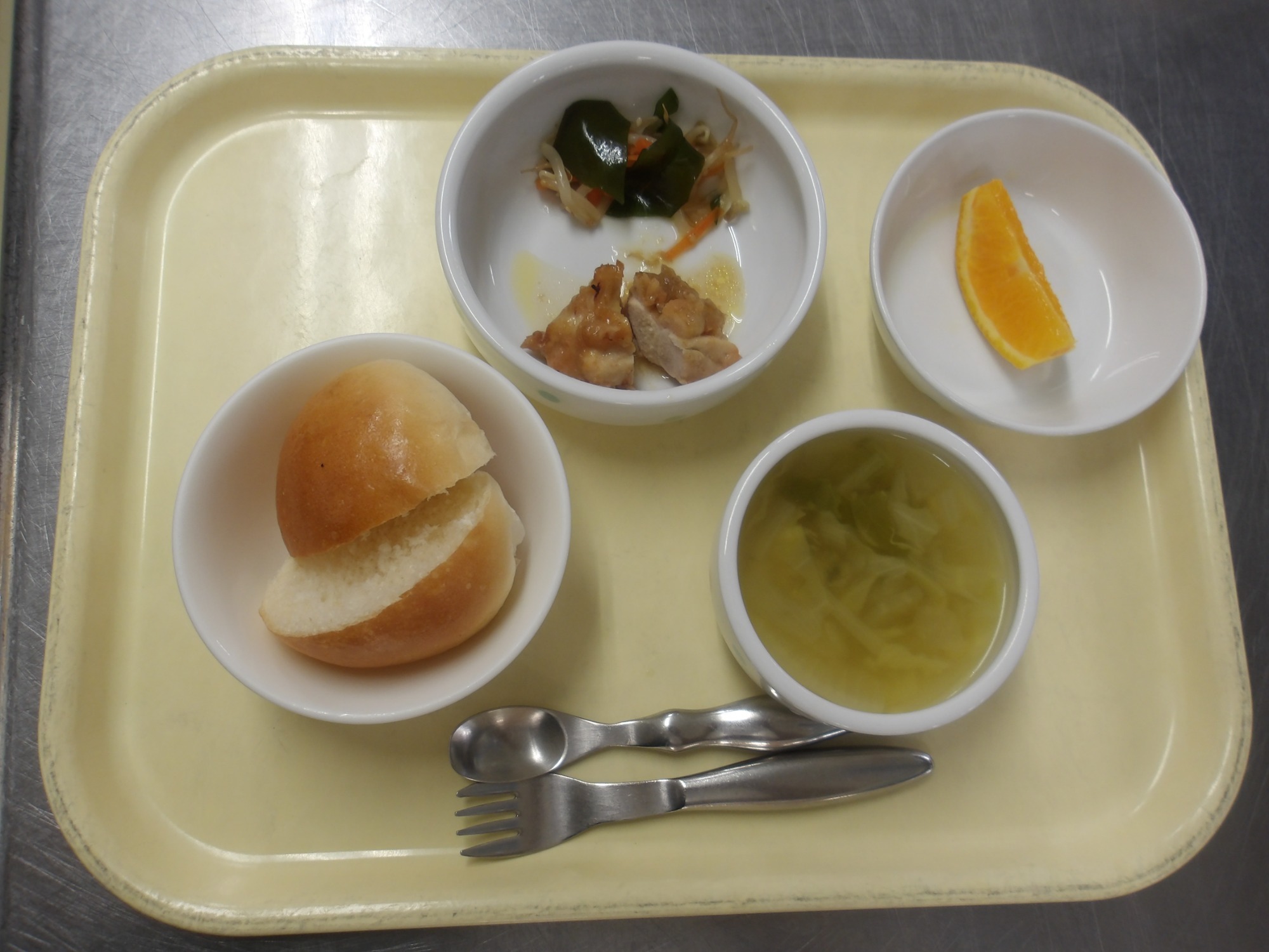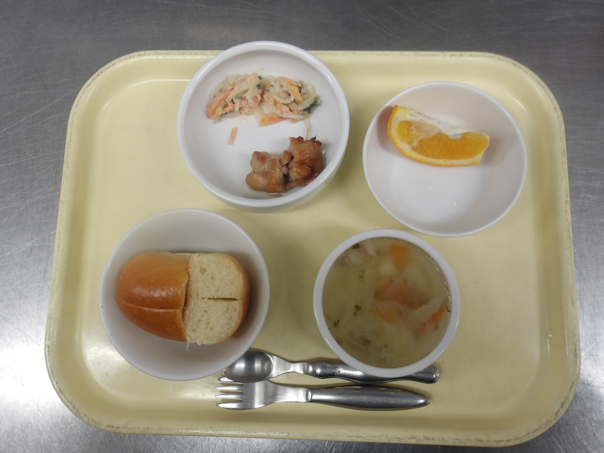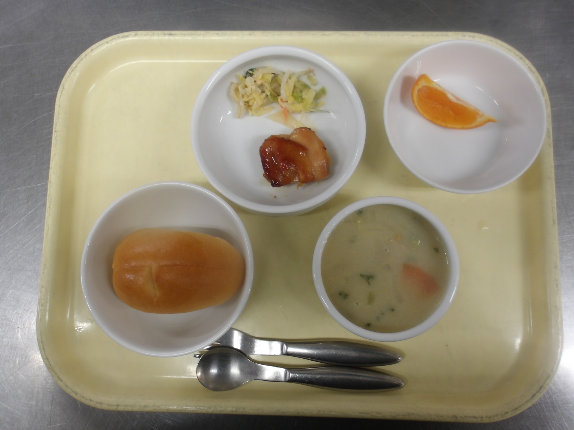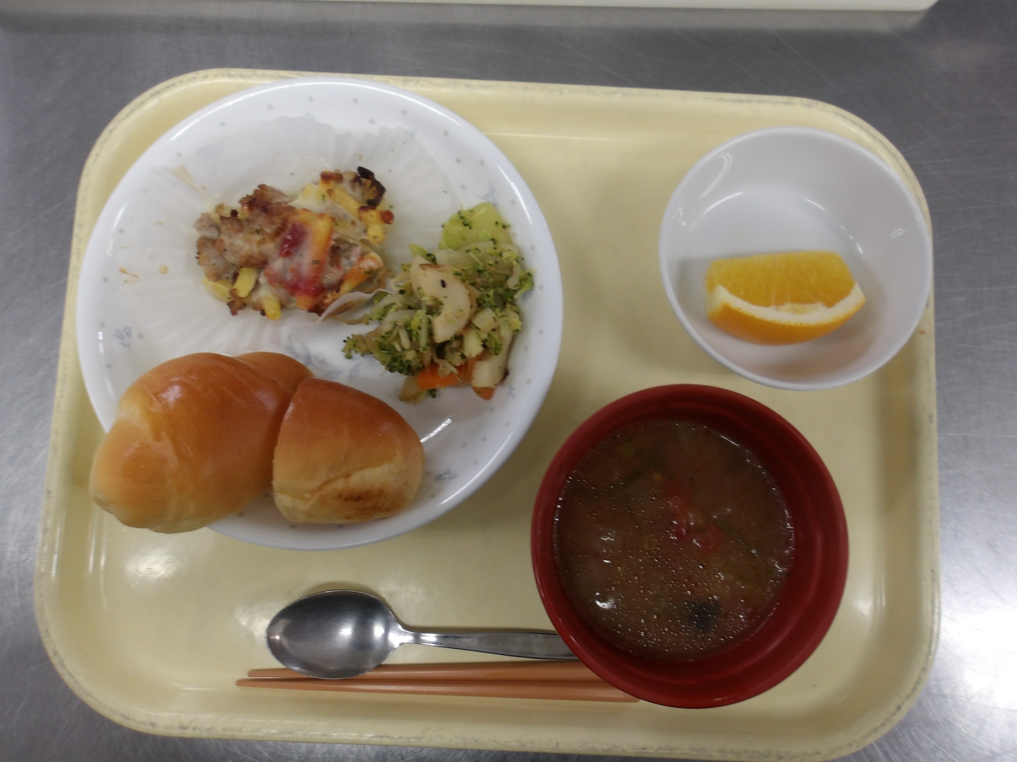 ロールパン マカロニグラタン ブロッコリのごま酢あえ ブイヤベース はっさく