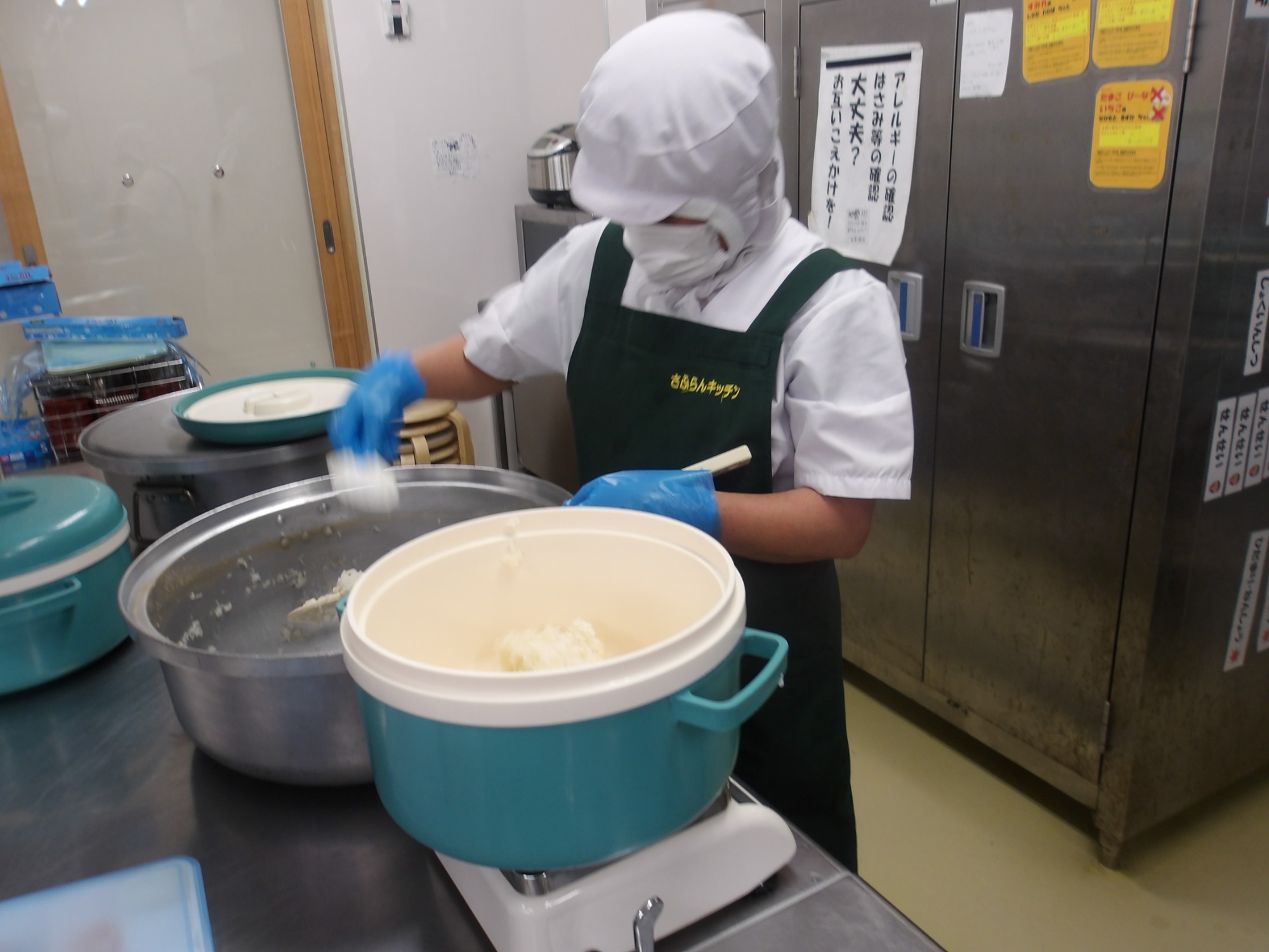 ひだまりの給食の間は、キッチンで盛り付けしたものを各部屋へ届けています。