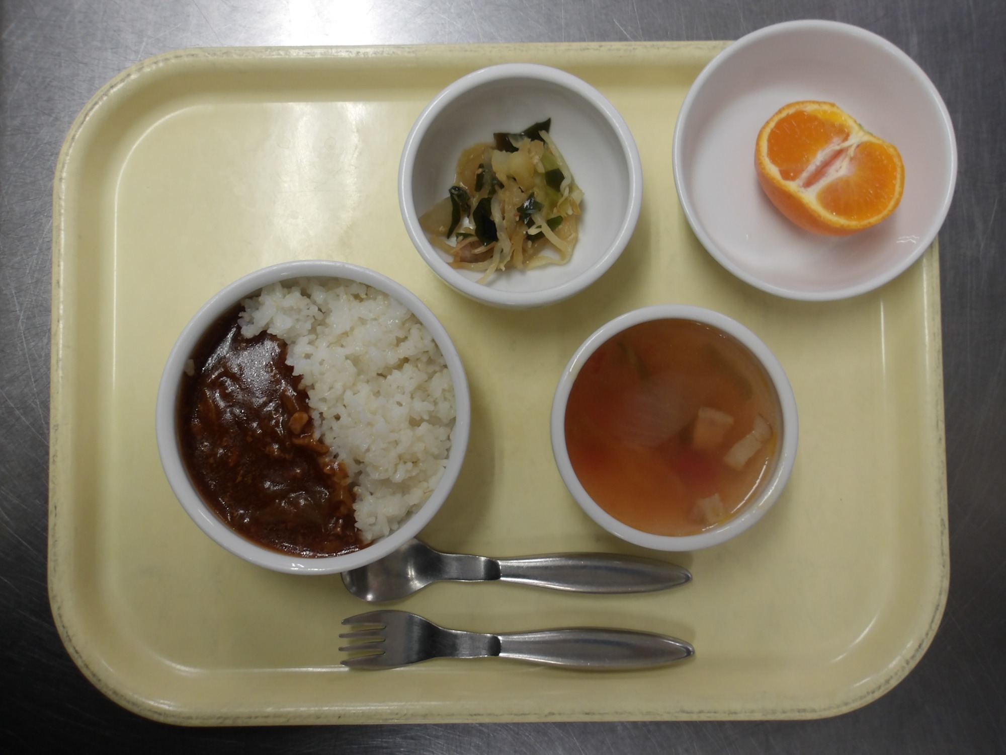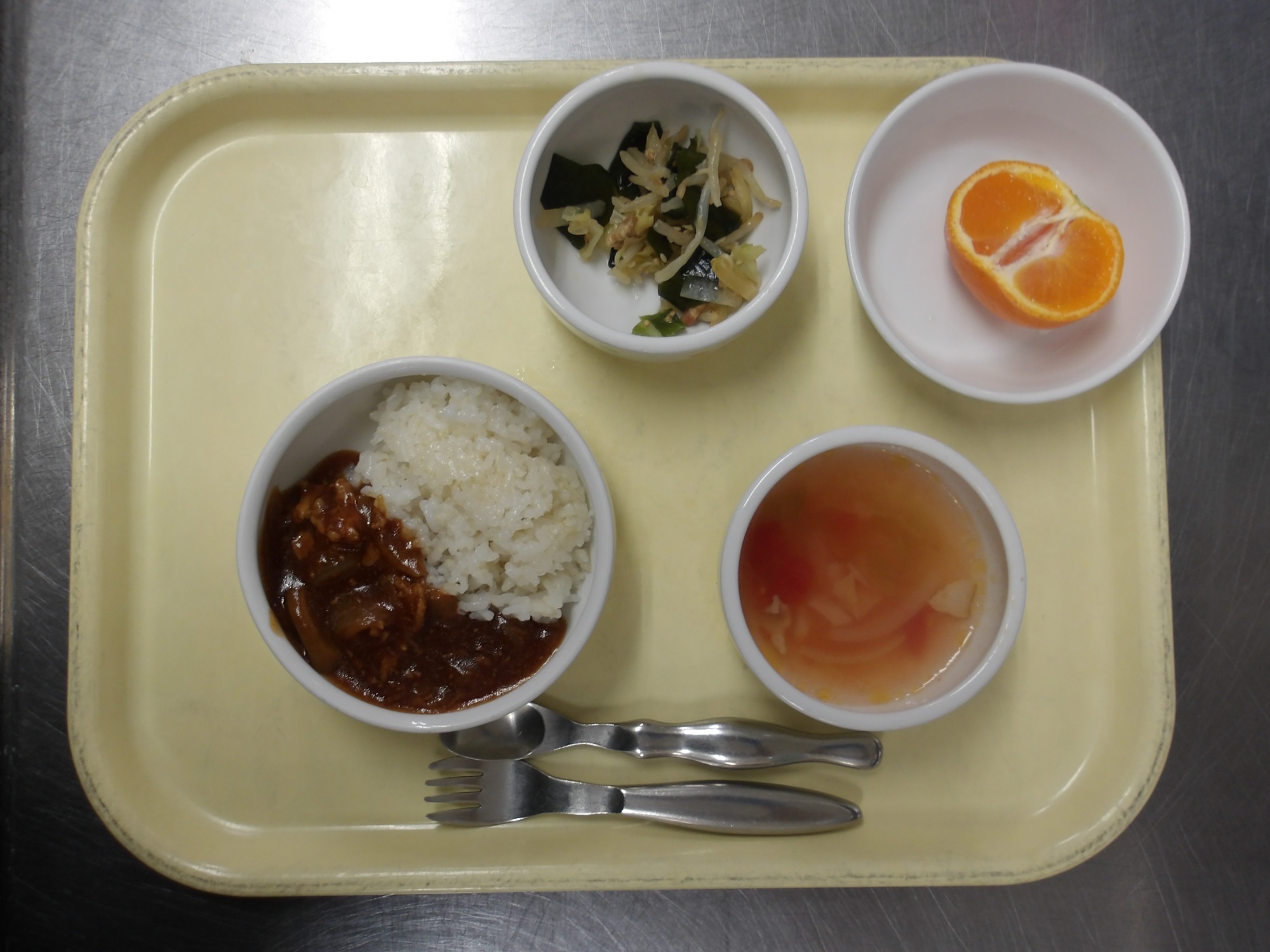 かんたん給食の今日はさふらんカレーに次いで人気の「ハヤシライス」玉ねぎたっぷりなので甘く仕上がっておいしかったね!!