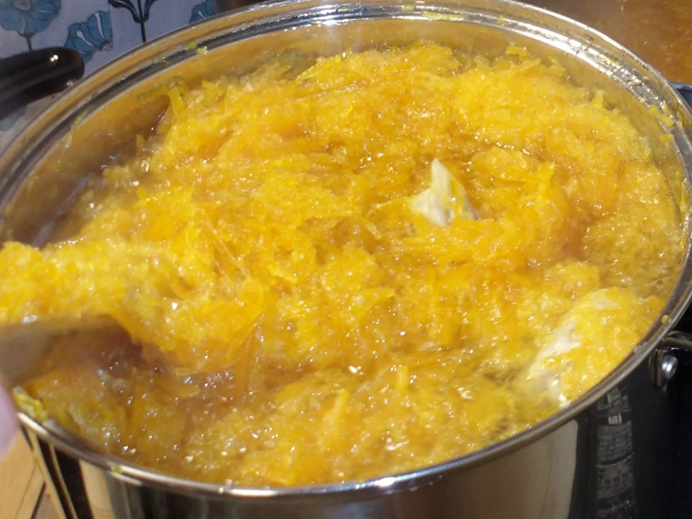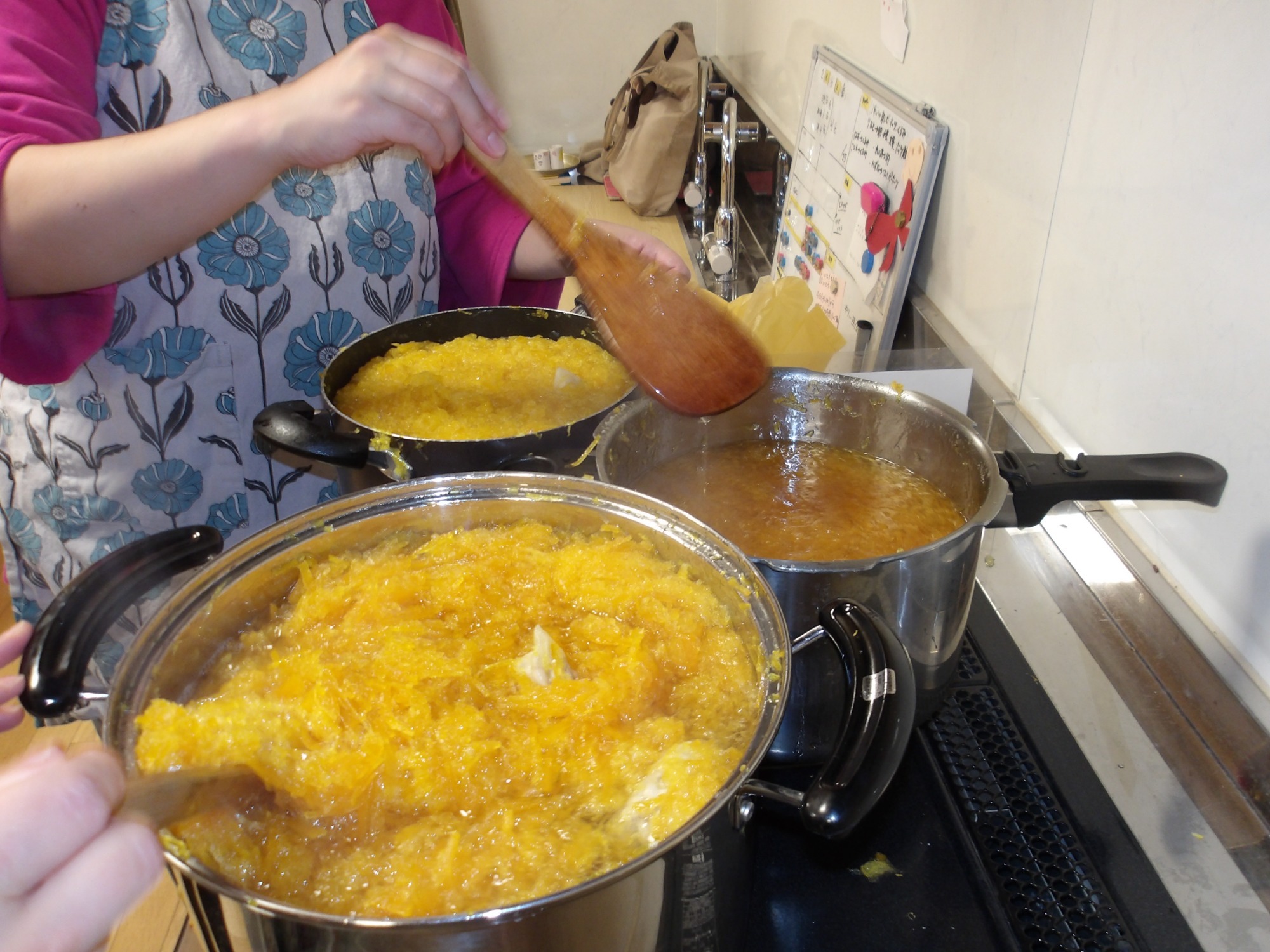 先週の煮込み始めの様子です。砂糖8キロ、夏ミカンは13キロ分を仕込んでの作業。あんなにたくさんだったのがおいしく仕上がりましたね!