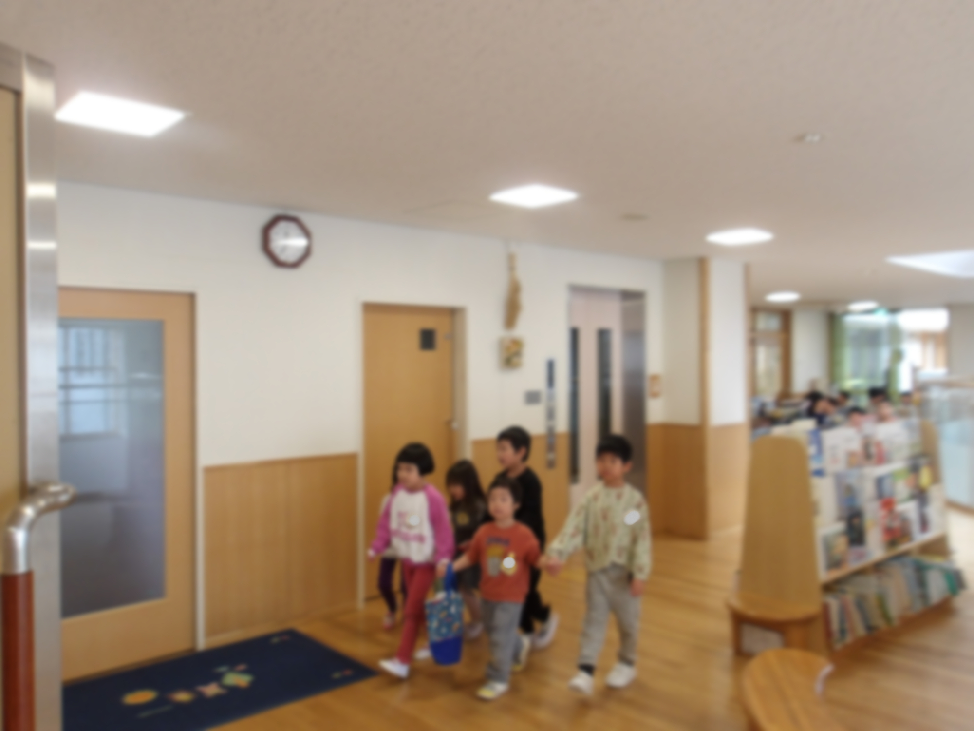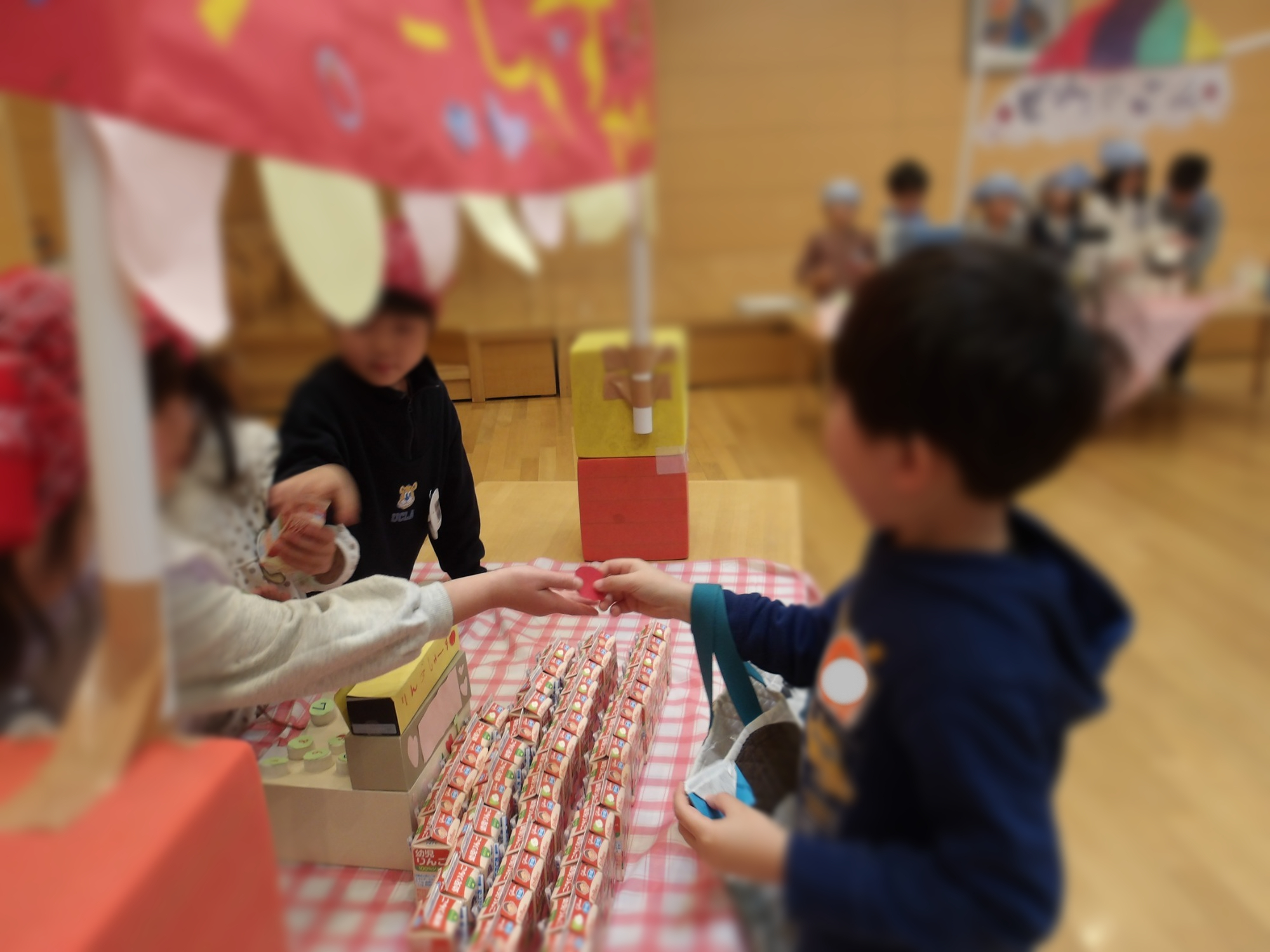 年長さんが小さな学年をお店屋さんまでご案内します。お兄さんお姉さんに連れられてうれしいね!!