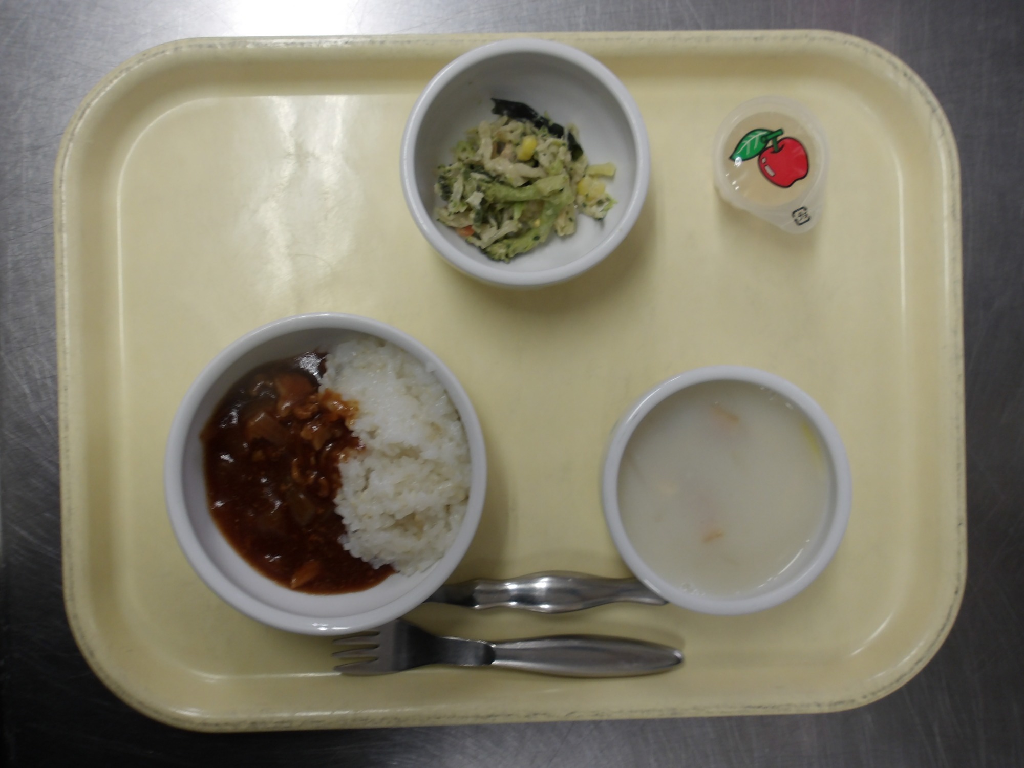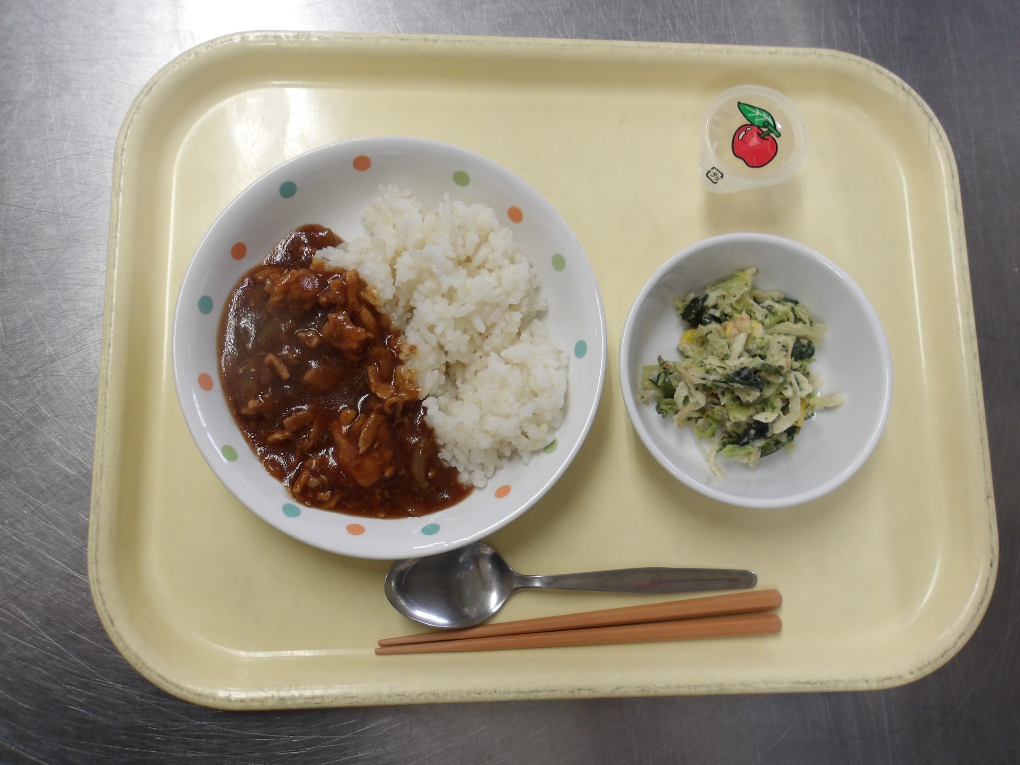 ドライカレーは毎年のリクエストで必ず登場する人気メニュー♪きょうもごはんのおかわりをもらいにきてくれたクラスありましたね♪