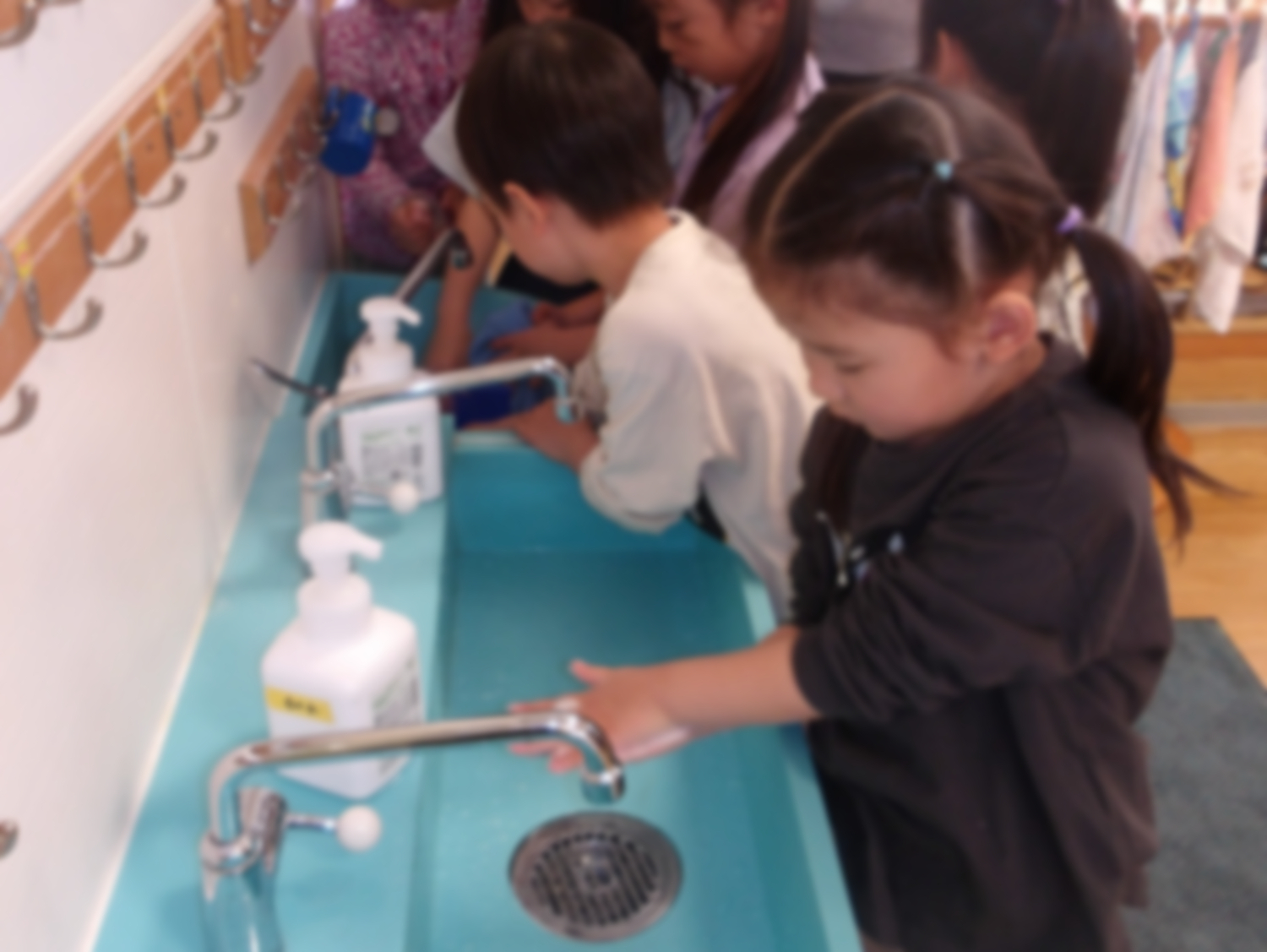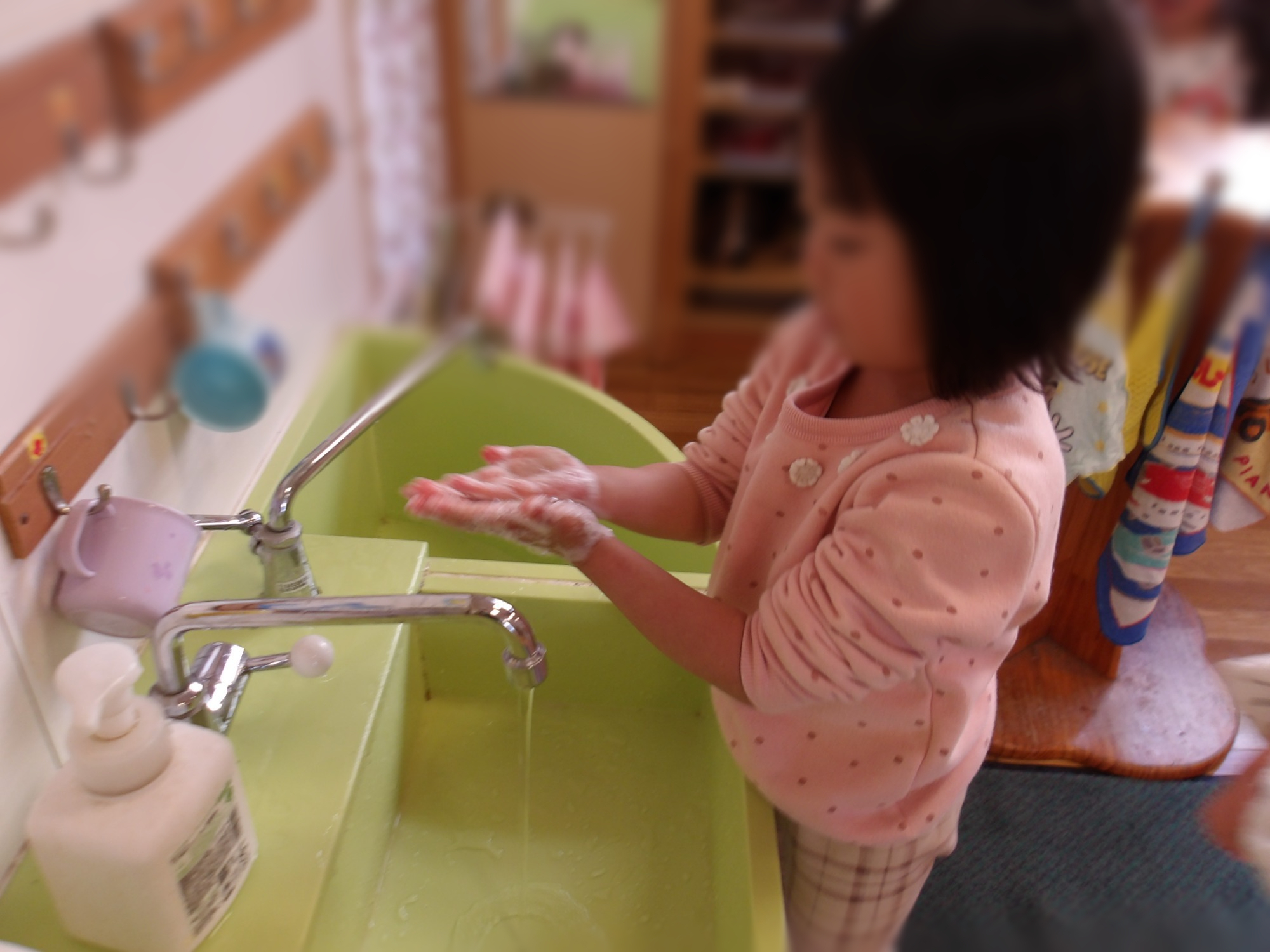 手を洗います!指の間とかもよく洗います♪ (年長)