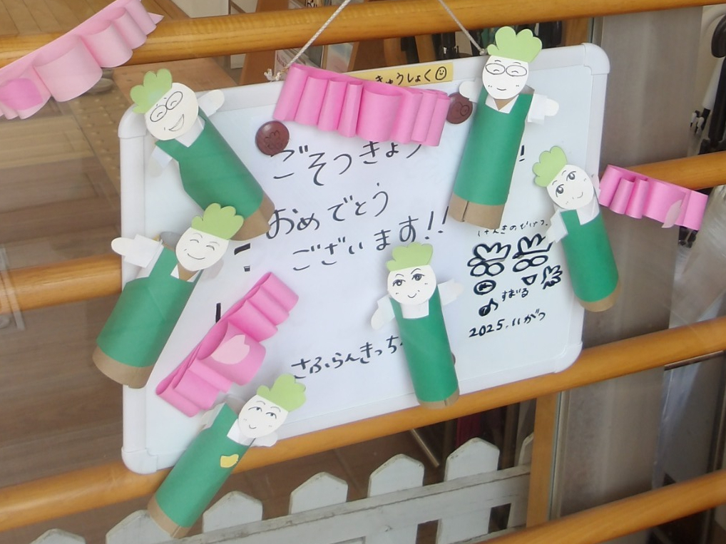 キッチンの6人からお祝いです!来週からの給食を楽しみにしていてね!!