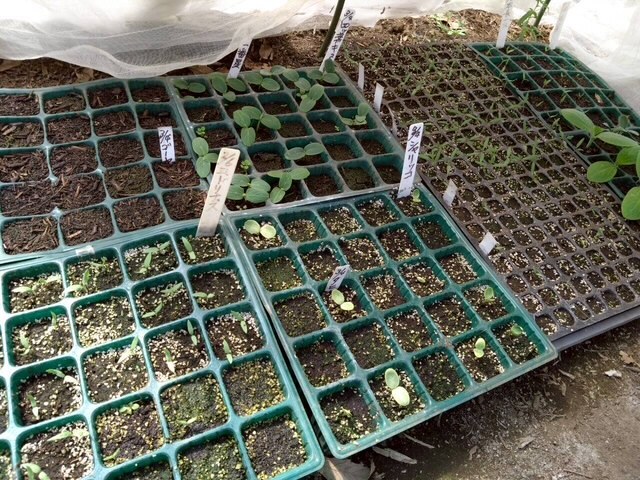 夏野菜の準備。かぼちゃ、ズッキーニ、ピーマン、しし唐、トマト、ミドリナスなどの苗作りが始まっていました!楽しみですね♪