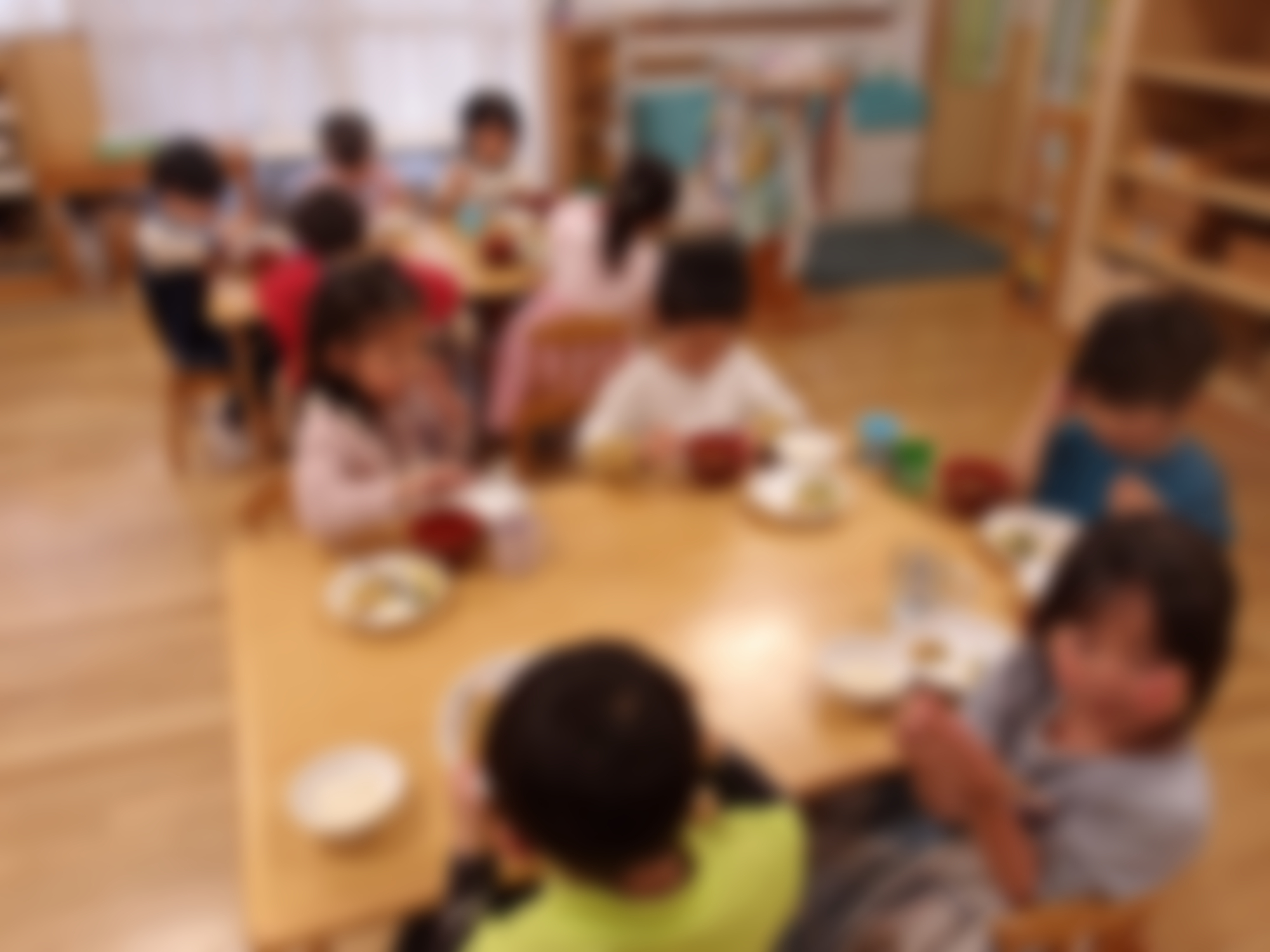 遊んだ後は、おトイレ済ませて手洗いをしたら給食!お腹がペコペコだったから嬉しいね!