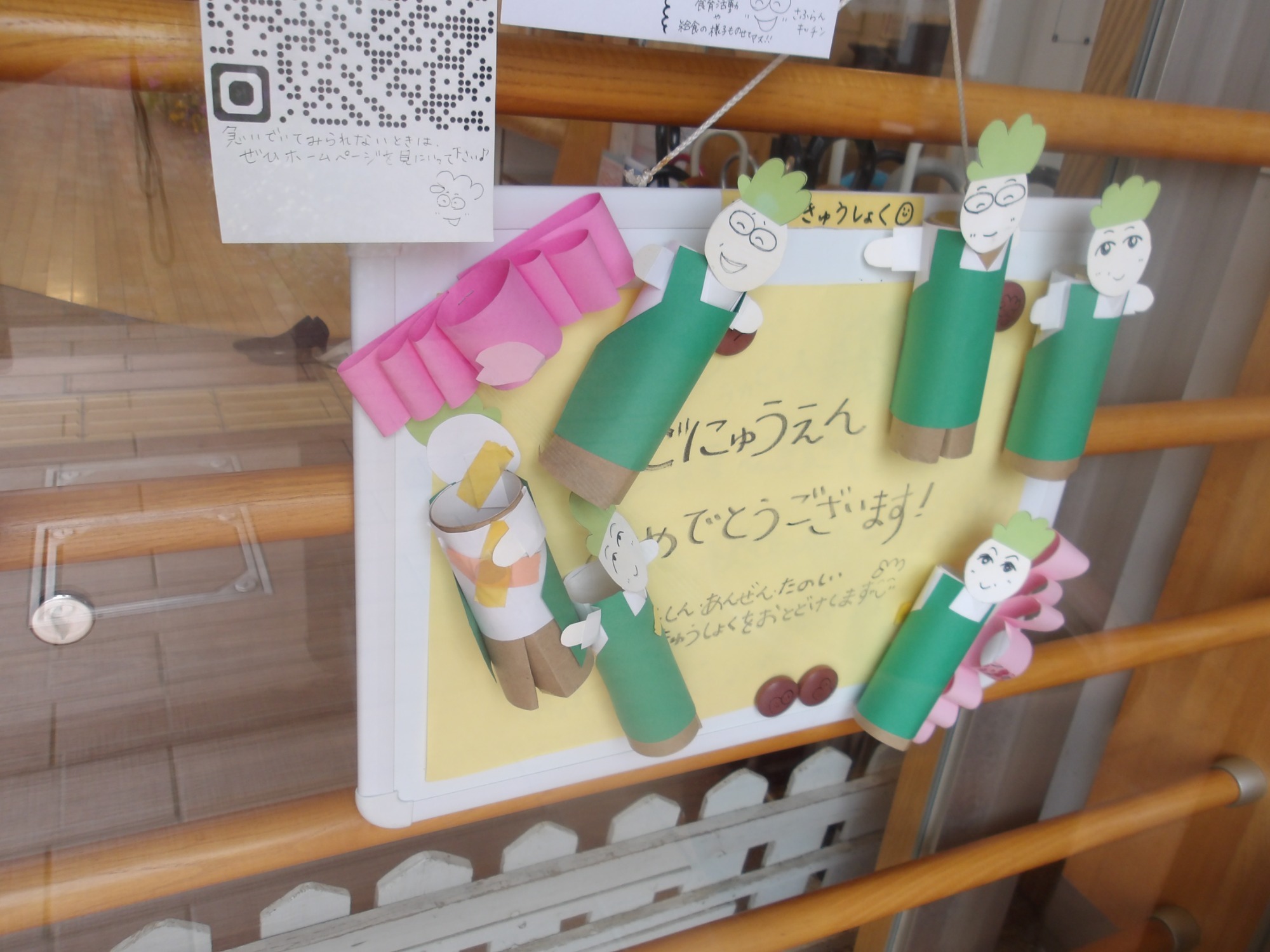 ナーサリーが入園式でした。明日からの給食を楽しみにしていてね!