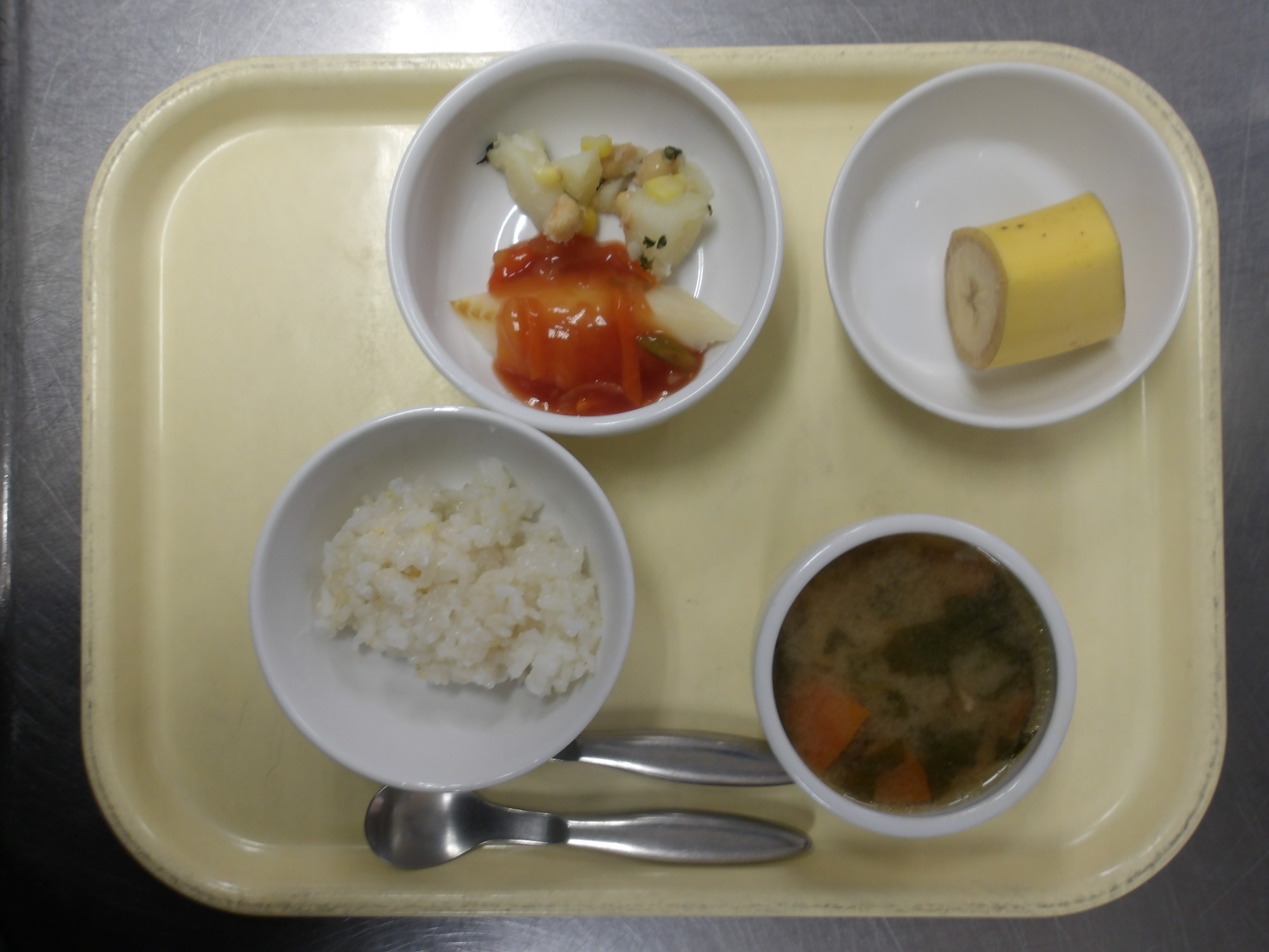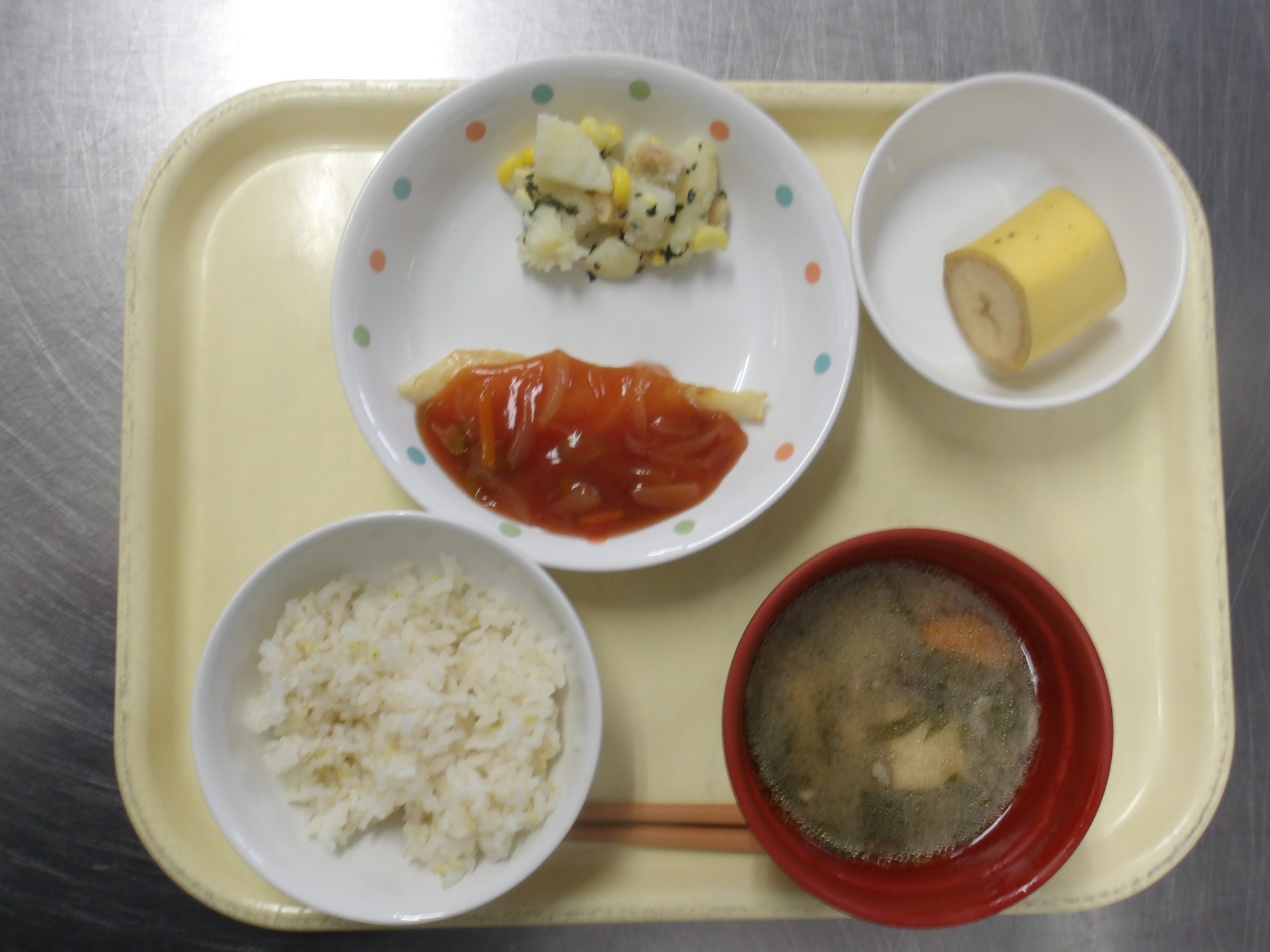 小さな学年ではカット後噛んでもなかなか飲み込めなくていた子もいた様子ですが、全体的には残菜が少なくよく食べていた様子です!