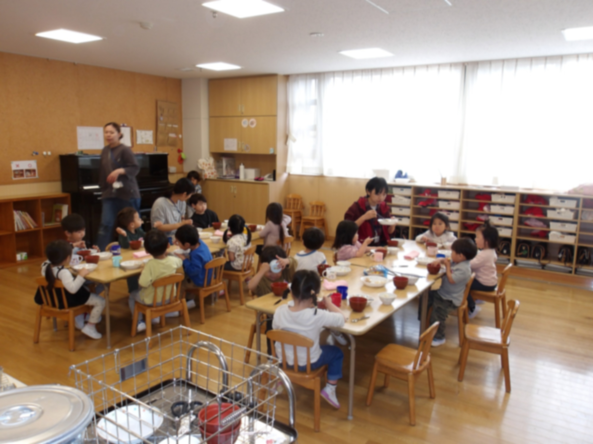 れもん組です。ひたすらもりもり食べている子が多いなと思いました。おかわりできたかな?